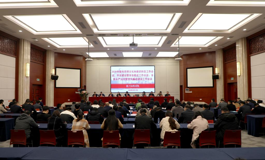 喻恺理事长在讲话中指出,会议旨在深入贯彻落实党中央、省委、省政府关于宣传思想文化、意识形态、平安建设、安全稳定、全面从严治党、党风廉政建设等方面的决策部署,全面落实省委教育工委、省教育厅的工作要求,确保各项任务贯彻到底、执行到位。他强调,各单位、各部门要充分认识宣传思想文化、意识形态、安全稳定、党风廉政建设等工作的极端重要性,进一步增强责任感、使命感和紧迫感。要严格落实主体责任,确保任务有人抓、有人管、能落实。主要负责人要切实履行第一责任人的职责,做到守土有责、守土尽责,对重点领域、关键环节要亲自研究、亲自部署、亲自督办,确保各项工作不留死角、不留盲区。要认真总结过去的经验教训,针对可能存在的隐患开展拉网式排查,确保整改落实到位,坚决防范和遏制各类安全事故发生。要坚决防止“只部署、不落实”“只安排、不检查”现象。各单位、各部门要对照本次会议精神,认真梳理工作任务,制定责任清单,明确时间节点,确保各项工作有计划、有步骤、可量化、可考核。要坚决杜绝侥幸心理和麻痹思想,以严谨细致的工作作风,确保各项措施落地落实。要加强督导检查,定期开展专项检查和通报,对工作不力、责任缺失的人员严肃追责问责,确保各项工作高效推进、落地见效。喻恺理事长进一步强调,宣传思想文化和意识形态工作、安全稳定工作、全面从严治党和党风廉政建设工作事关学校改革发展大局,责任重大,使命光荣。全校上下要以高度的政治自觉、强烈的责任担当、务实的工作作风,全力推动各项工作落地见效,为建设平安校园、推动学校高质量发展作出更大贡献。