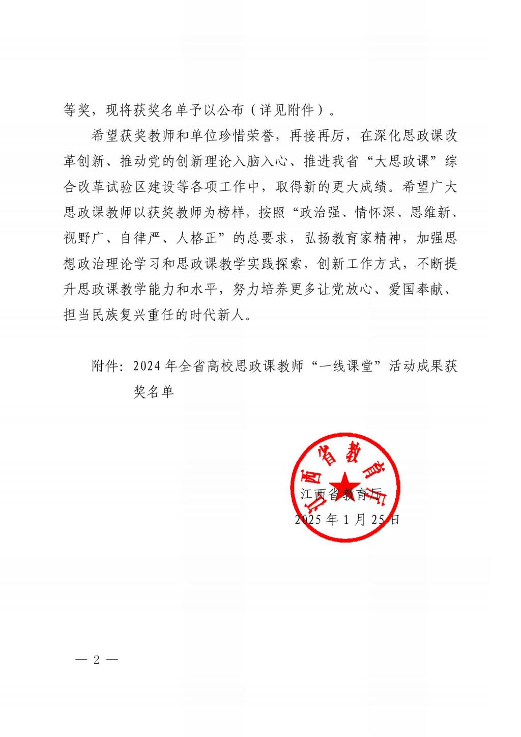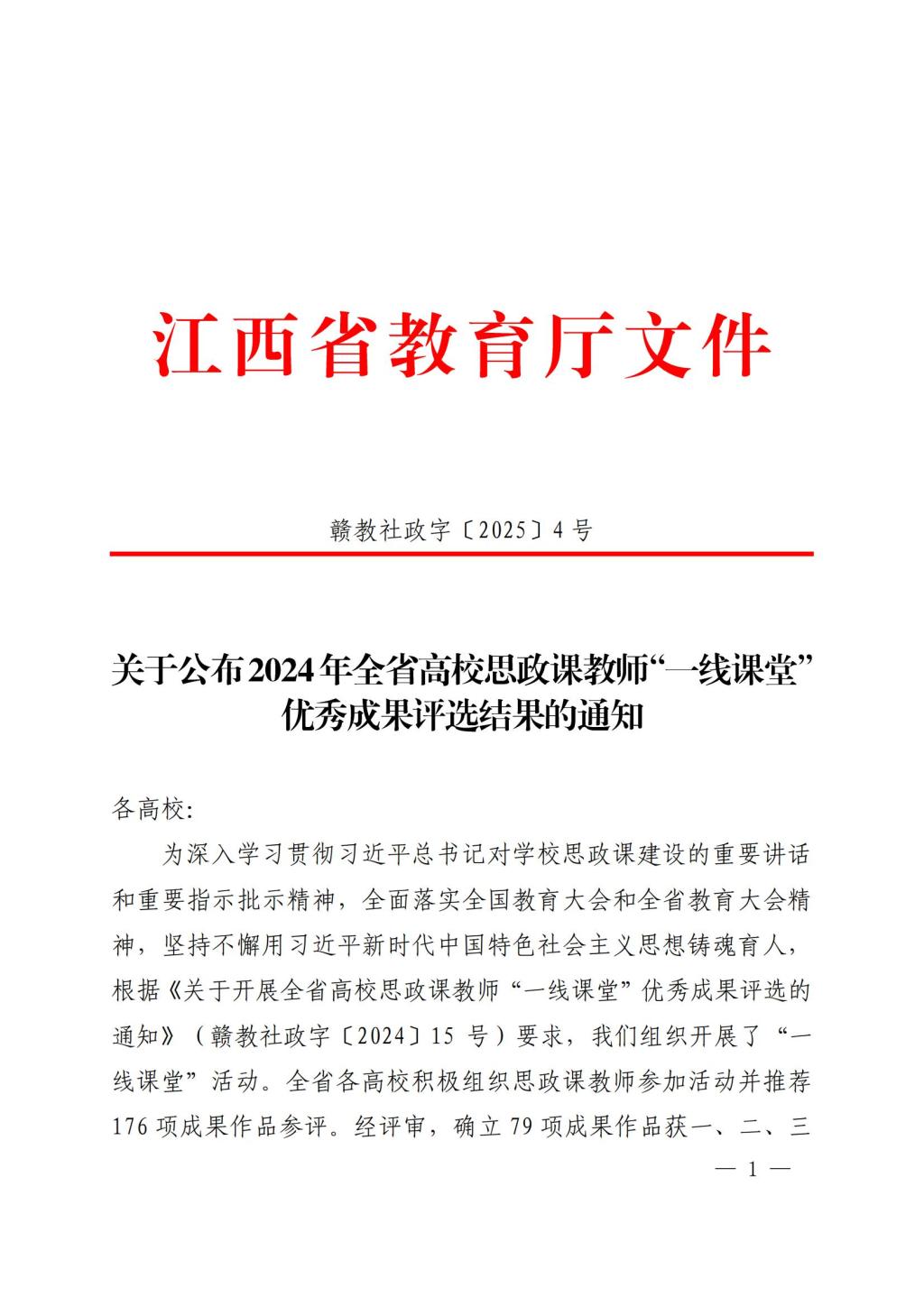 江科网讯(记者 刘莹)近日,江西省教育厅公布2024年全省高校思政课教师“一线课堂”优秀成果评选结果。我校选送的两项成果分别获得二等奖、三等奖。