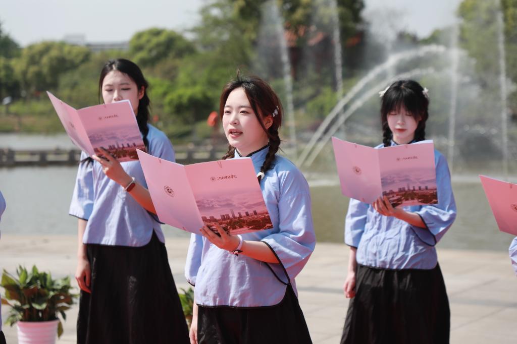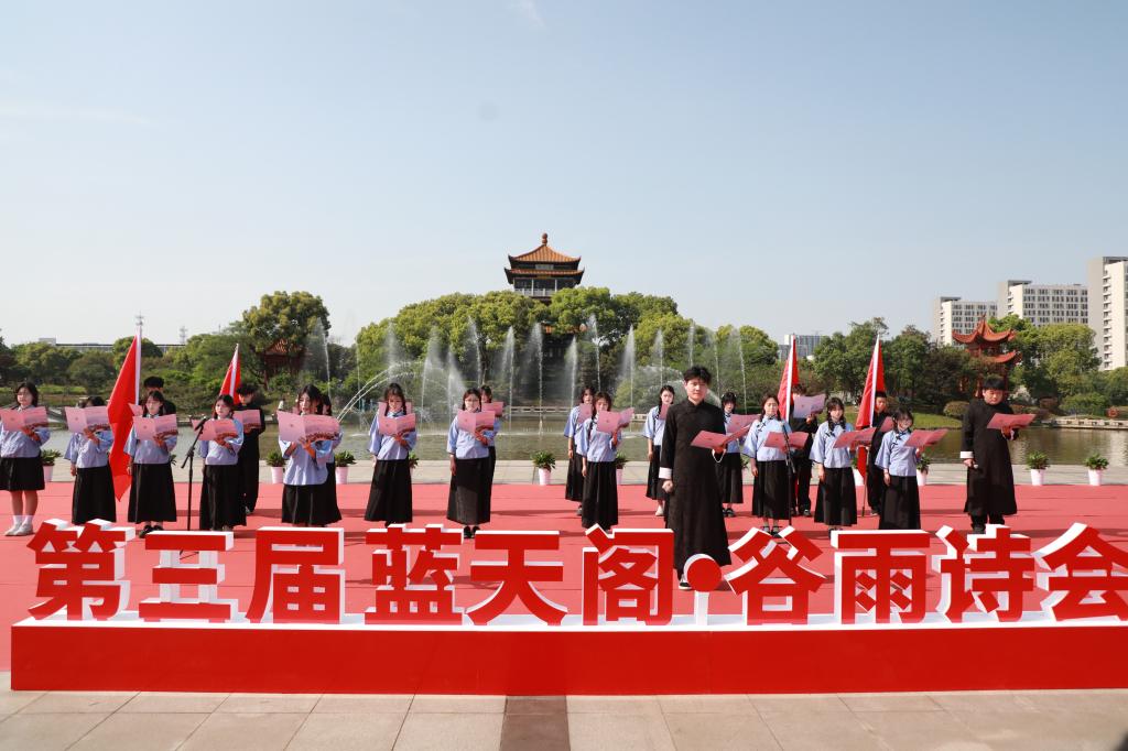 江科网讯(记者 何强江 刘莹)谷雨时节,诗意盎然。4月18日,学校在临水广场举办第三届蓝天阁·谷雨诗会。校党委书记江延湖,校党委副书记、副校长闵桂林,校党委副书记夏拥华出席活动,与广大师生一同品味诗词,在古韵今声中探寻传统文化的深厚底蕴。