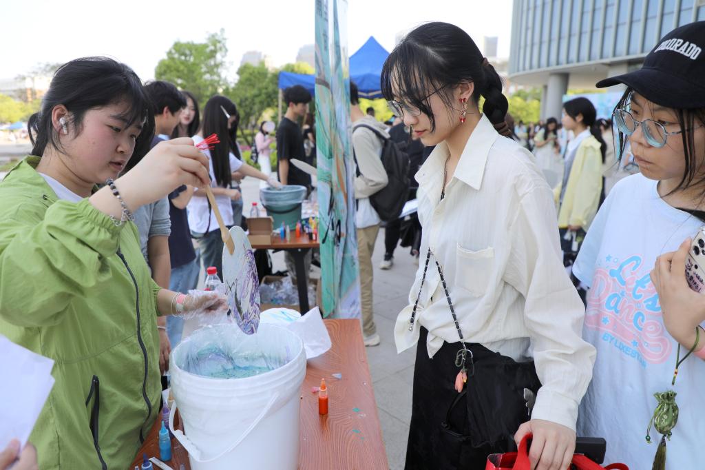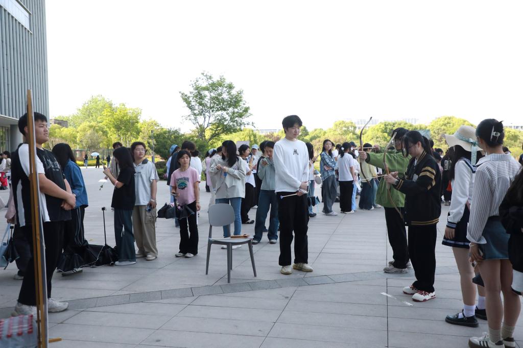 节目展演后,主题游园活动精彩纷呈,诗词飞花令、传统投壶、射箭、手工制作香囊、体验茶艺……各学院、见微知著大学生网络文化工作室、旭日文学社、记者团等精心准备的各式活动,吸引着师生们纷纷参与其中,尽情感受传统文化的独特魅力。江延湖书记也来到活动现场,先后体验射箭、识五谷等特色活动,并鼓励同学们既要做中华优秀传统文化的传承者,更要成为红色基因的坚定践行者,将文化自信融入血脉,在新时代书写属于自己的奋斗篇章。