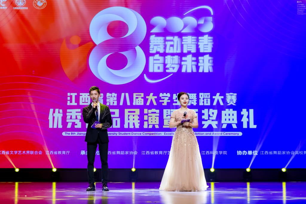 江科网讯(记者 何强江)4月25日晚,“舞动青春,启梦未来”江西省第八届大学生舞蹈大赛优秀作品展演暨颁奖典礼在蓝海大剧场圆满落下帷幕。本届舞蹈大赛由江西省文学艺术界联合会、江西省教育厅联合主办,江西省舞蹈家协会、江西省教育厅艺术教育委员会、江西科技学院共同承办,共有全省72所高校参加。经过激烈角逐,我校教育学院的作品《晒场秋歌》获得本科甲组(普通组)一等奖、音乐舞蹈学院的作品《一念一生之海昏》获得本科乙组(专业组)三等奖。