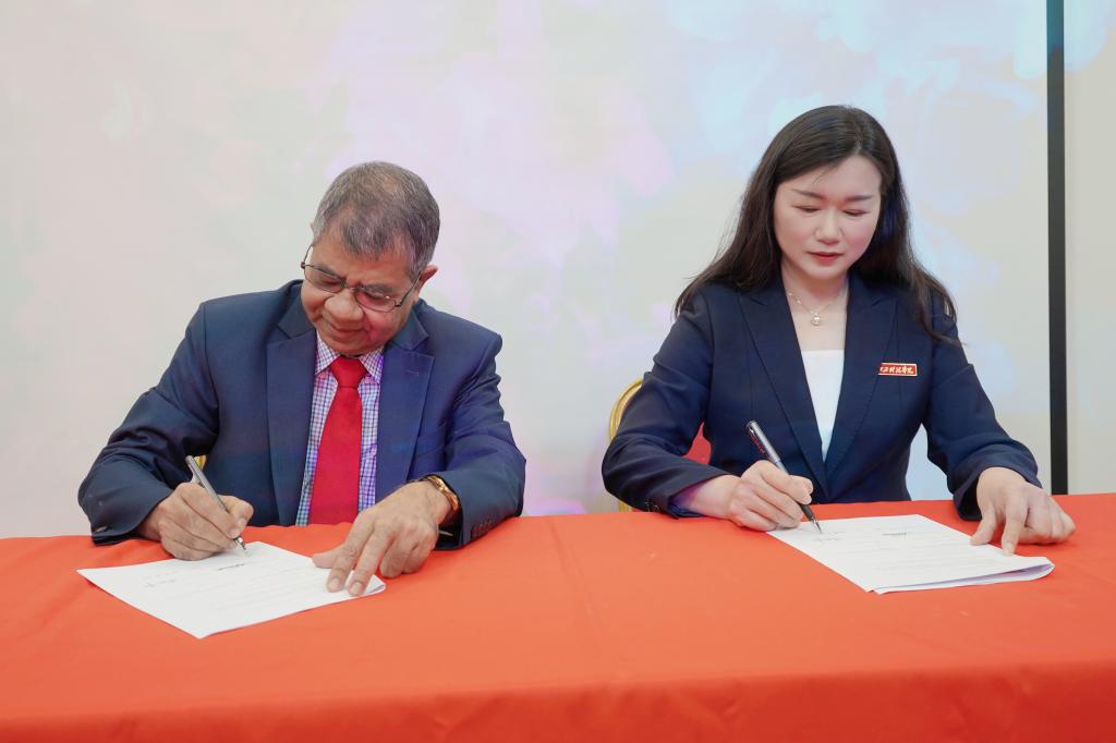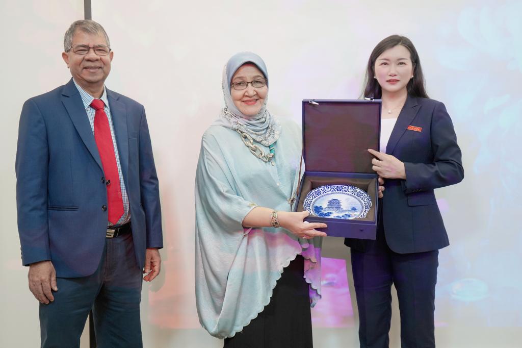 随后,在与会嘉宾的共同见证下,张海涛校长与Amiya校长代表两校签署联合培养研究型博士协议。签约环节后,两校互赠象征友谊的文创纪念品并合影留念。