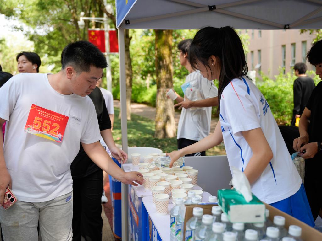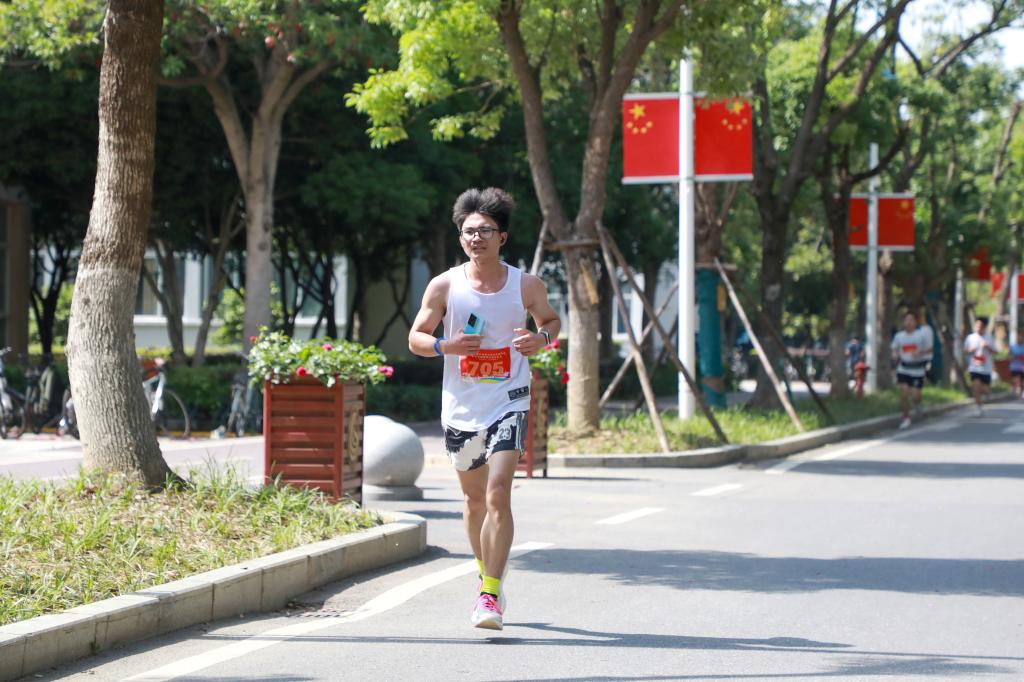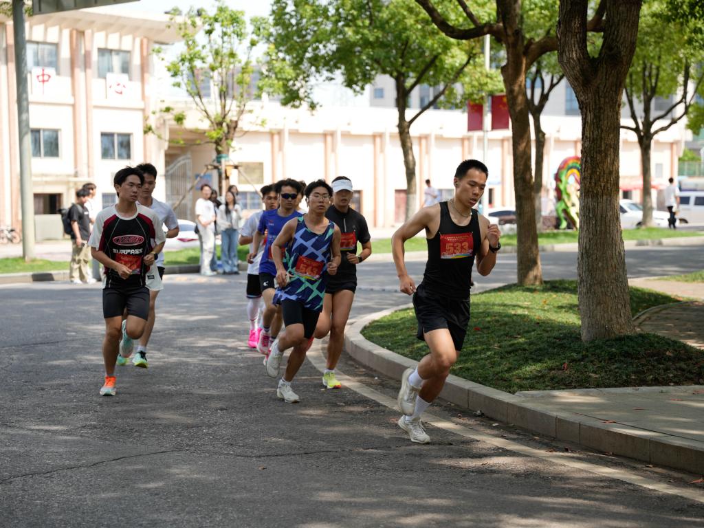 本届环校跑活动主题为“体重管理年 运动展新颜”,由体育学院主办,学工处、工会协办。赛前,主办方严格按照体育赛事标准,精心规划路线,全面排查赛道安全隐患,并在沿途科学设置医疗点、补给站和引导标识,确保赛事安全有序进行。环校跑以临水广场为起终点,分设男子组、女子组两个组别。