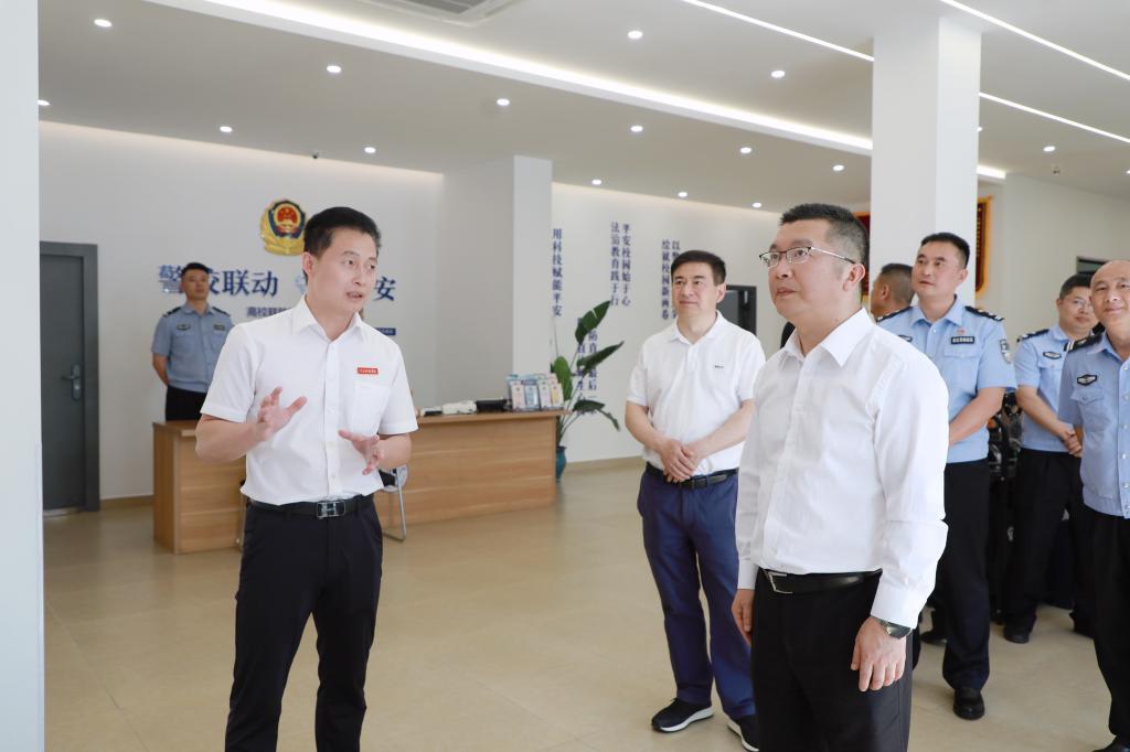 陈江宁书记依次参观了高校联防联控中心内的一站式服务站、监控中心、“铃琪”工作室、“石榴籽”工作室、警务室、宣传角、微型消防站、“云开”调解室等。他对联防联控中心的工作给予了充分肯定,称赞其功能完善、运转高效,在维护校园安全稳定、促进师生交流融合等方面发挥了积极作用,并鼓励中心继续优化服务,为高校发展提供更坚实保障。