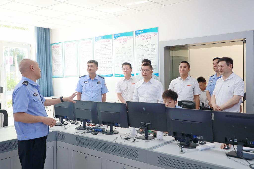 江科网讯(记者 刘莹)5月12日,南昌高新区党工委副书记、管委会主任陈江宁,南昌高新区党工委委员、高新公安分局局长熊新伟一行来我校高校联防联控中心调研。学校创办人于果、校党委书记江延湖、副校长周冰冰,昌东镇派出所所长戴凤华,宣传部、保卫处、学工处、心理健康中心负责人及相关工作人员陪同调研。
