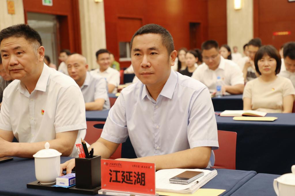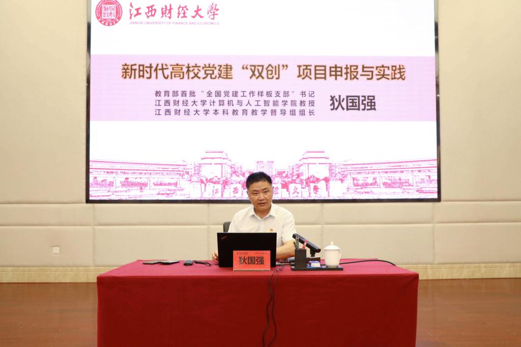 江科网讯(通讯员 魏芳)为深入贯彻落实新时代高校党建示范创建和质量创优工作要求,扎实推进党建“双创”项目申报与实践,5月15日上午,学校在行政南一楼第一会议室举办党建“双创”工作专题讲座。本次讲座特邀教育部首批“全国党建工作样板支部”书记、江西财经大学计算机与人工智能学院狄国强教授主讲。校党委书记江延湖、党委副书记夏拥华出席。全校基层党组织负责人、党务工作者及首批“金凤凰”党建项目申报骨干等百余人参会。讲座由夏拥华副书记主持。