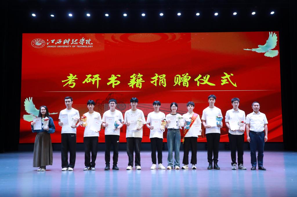 会上,与会领导、嘉宾为获得奖学金的学生代表颁发荣誉证书。退役士兵奖学金获得者代表章勇、思创奖学金获得者代表邓志明、学业奖优金获得者代表徐雨晴、国家励志奖学金获得者代表朱宇航、国家奖学金获得者代表毛祖勤结合自身实际,分别从军旅生涯、学业塑造、科研竞赛、社会实践和考研备考等方面作了精彩的分享交流。考取东华理工大学研究生的张志颖、考取中国传媒大学研究生的李文祥、考取南京航空航天大学研究生的朱宇航、考取福建中医药大学研究生的魏心情、考取江西师范大学研究生的喻勇嘉、考取湖南大学研究生的洪宇哲、考取山西大学研究生的刘志鹏、考取重庆科技大学研究生的王浩、考取云南财经大学研究生的肖大伟、考取江西中医药大学的叶坤等十位同学,向2026届准备考研学生代表赠送考研复习书籍资料,江延湖书记为赠书学生颁发荣誉证书。
