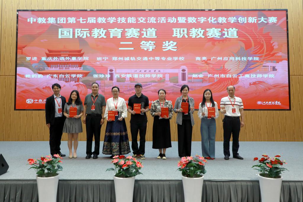 中国教育集团副总裁胡剑锋,广州松田职业学院校长吴教育,外语研究出版社高等营销中心副总监王悦,中国教育集团教学与人力资源部总监吴金舟、信息部总监李晓宾,江西科技学院副校长陈辉,中国教育集团国际教育部总监、江西科技学院副校长吕文威,广东白云学院副校长陈春发,江科附中国际部教学副校长姜昱珂,广州应用科技学院常务副校长吴舸,烟台科技学院副校长左振华,重庆外语外事学院副校长刘毅,海口经济学院校长助理薛永刚,广州市白云工商技师学院副校长周强,西安铁道技师学院副校长李林威,郑州城轨交通中等专业学校副校长闫明松,海口经济学院附属艺术学校副校长杜泉宏等集团成员学校领导出席活动。各参赛学校的教务处、教师发展中心、评审专家和参赛教师,以及我校师生代表参加当天的交流活动。