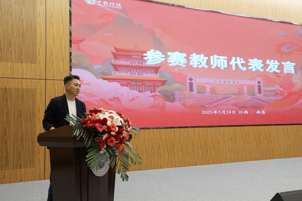 江西科技学院教师殷志强、广州应用科技学院教师张刘卓作为参赛教师代表先后发言,分享自己在教学一线的所思所感,表达对教育的热爱之情。