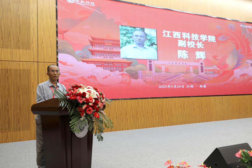 陈辉副校长代表江西科技学院致欢迎辞,对远道而来的集团领导、各成员学校校领导和参赛教师表示热烈的欢迎。他介绍了江西科技学院的基本情况和各项事业发展取得成绩。他希望大家以此次大赛为新的起点,共同推动集团成员学校教师教学水平的全面提升,努力探索教育数字化转型的新路径,共同谱写中国教育集团内涵式、高质量发展的崭新华章。
