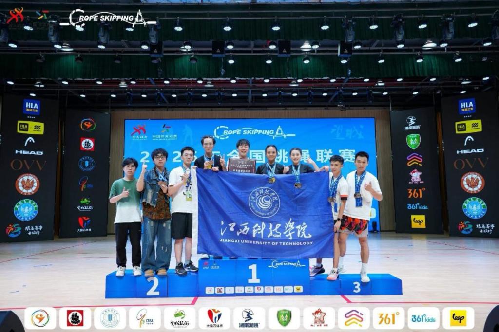 江科网讯(通讯员 潘文博)近日,由国家体育总局社会体育指导中心主办的2025年全国跳绳联赛(湖南长沙站在望城火热开赛。我校跳绳队历经两天激烈角逐,从全国76支队伍、近千名选手中突围,以4金2银5铜的成绩实现速度与花样项目的全面突破。同时,队伍凭借赛场上展现出的良好精神风貌与文明素养,荣获“道德风尚奖”,实现竞技成绩与精神文明的双丰收。