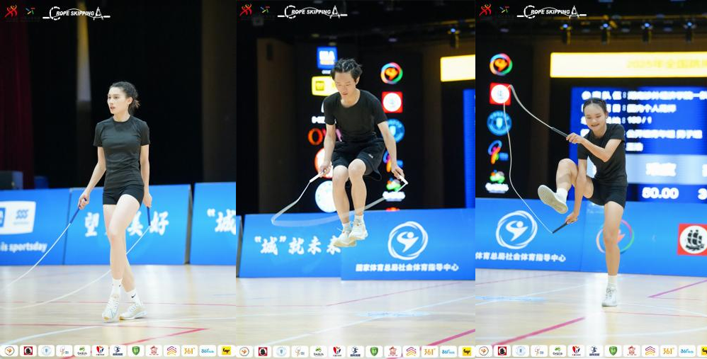 此次比赛不仅为各校运动健儿搭建起珍贵的实战切磋与交流互鉴平台,更如精准的标尺,有效检验全国高校跳绳运动的发展高度与水平。赛场上,江科跳绳队的队员们化身“绳上舞者”,在六大项目中火力全开。