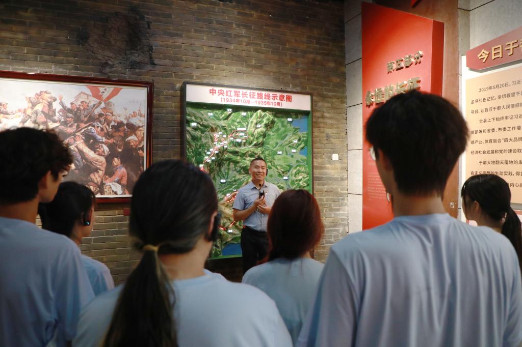 纪念馆内,一件件珍贵的文物,一幅幅生动的历史照片、一段段详实的文字资料,全方位、多角度再现了那段气壮山河的长征岁月,引导大家探寻长征精神的深刻内涵与时代价值。江延湖书记为同学们讲授了生动的思政微课。他强调,从这里集结出征的8.6万红军,平均年龄只有20岁左右,恰巧和今天的你们一样,正处在风华正茂的年纪。他们用青春的热血铸就了长征精神。希望大家认真学习革命历史,探寻赣鄱大地红色文化,赓续红色血脉,做信念如磐的追光者,以长征中“革命理想高于天”的信念激励自己,不退缩、不迷茫;做勇于担当的行动者,传承红军不畏艰险、攻坚克难的作风,以“舍我其谁”的担当诠释青春价值;做心怀家国的传承者,学习红军与人民群众“生死相依、患难与共”的鱼水情,践行“为人民服务”的宗旨,传承弘扬长征精神。
