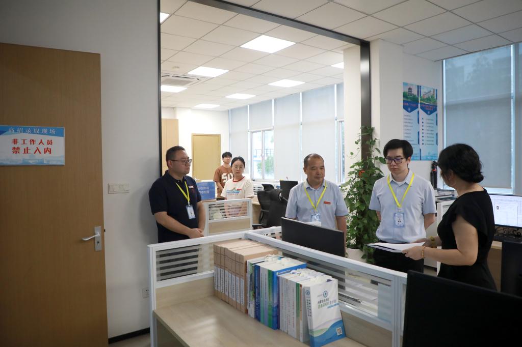 在招生录取现场,喻恺理事长听取工作人员关于招生录取进展情况的汇报,详细了解录取日程、投档情况、生源质量及相关工作安排和服务保障等关键环节,对招生录取工作安全、平稳、有序开展给予充分肯定。