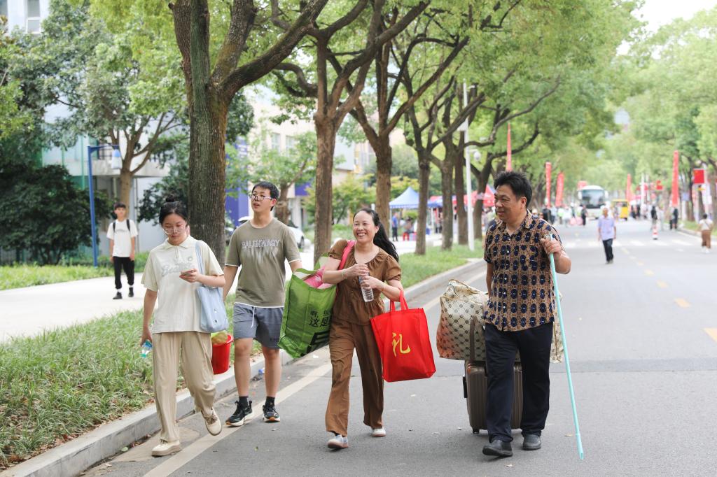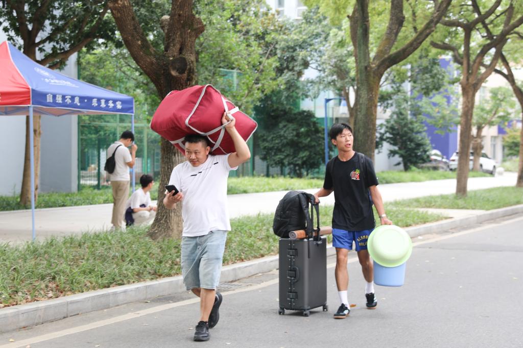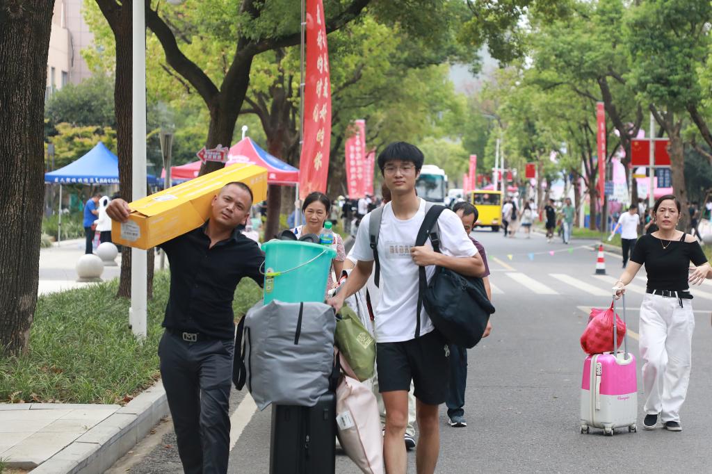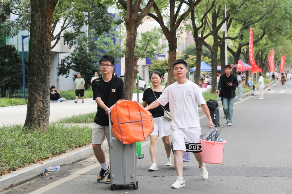 迎新现场,灿烂笑容与清脆快门声交织共鸣,新生们的大学生活写下生动开篇。完成报到后,不少家长由衷称赞:“学校服务周到、细致,孩子在这儿上学,我们很安心!” 为了让新生顺利开启校园生活,今年学校进一步升级新生报到服务,不仅在机场、火车站、地铁站安排志愿者暖心接站,还在校园内构建起全方位服务网络——从大门口到教学楼、从各学院到学生宿舍,保卫处工作人员随处可见,全力引导车辆安全有序出入;学生志愿者们分布在学校各个角落,顶着烈日帮助新生们搬运行李箱,耐心为新生们答疑解惑,手把手引导新生完成报到手续;学生资助管理中心更专门设立绿色通道,帮助家庭经济困难新生清晰了解学校资助育人体系及相关政策,用贴心服务为新生护航。