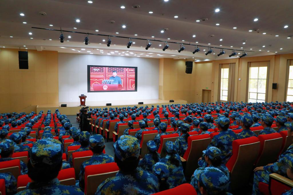 9时,蓝海大剧场、沙龙舞台、报告厅、映山红剧场、湖畔艺术中心讲学厅内,正在参加军训的本科新生同上这堂生动珍贵的“开学第一课”和思想政治教育课,激荡起爱党、爱国、爱社会主义情怀。