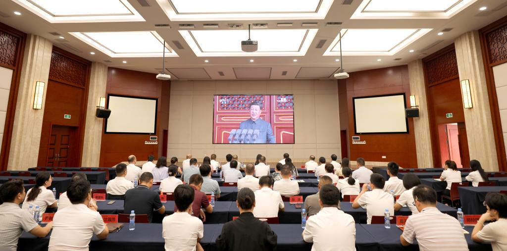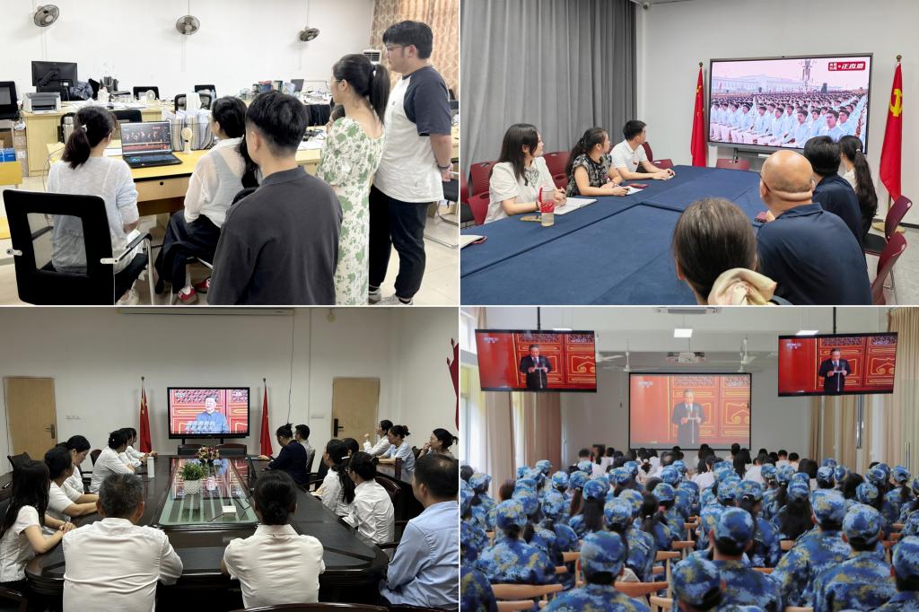 江科网讯(记者 何强江)9月3日,纪念中国人民抗日战争暨世界反法西斯战争胜利80周年大会在北京天安门广场隆重举行,中共中央总书记、国家主席、中央军委主席习近平发表重要讲话并检阅受阅部队。江西科技学院校长张海涛等全体在家校领导同师生相聚在会议室、党员活动室、教室等地,共同收看纪念大会实况直播,在这场气势恢宏的庄严盛典中,传承和弘扬伟大抗战精神,凝聚起蓬勃向上的精神力量。