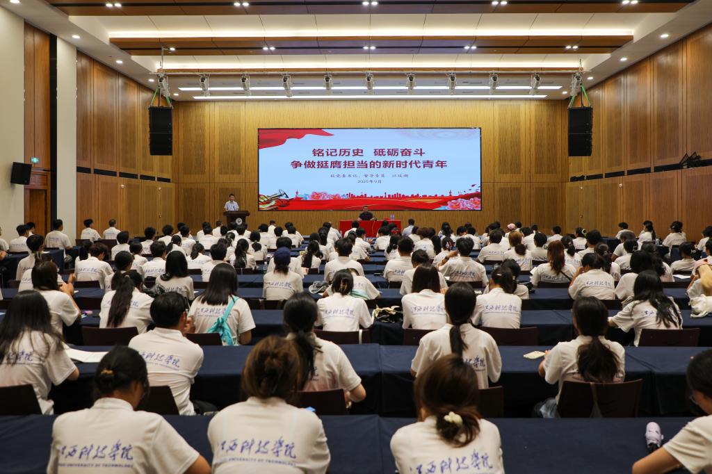 此次“开学第一课”现场气氛热烈,不时掌声雷动,既有历史纵深的回望,又有现实使命的指引,让2025级新生接受了一次深刻的精神洗礼和思想淬炼,为他们开启大学生涯奠定了坚实的理想信念根基。同学们纷纷表示,未来将以抗战精神为指引,努力学习、锤炼本领,争做有理想、敢担当、能吃苦、肯奋斗的时代新人,为强国建设、民族复兴伟业贡献青春智慧和力量。