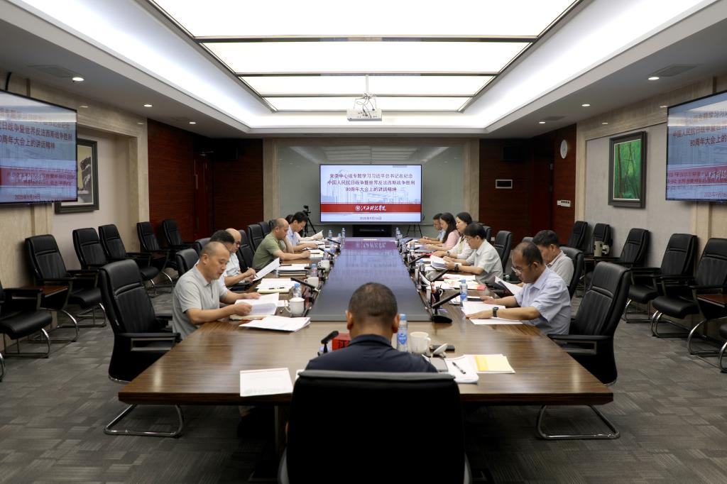 会议还学习习近平总书记在纪念中国人民抗日战争暨世界反法西斯战争胜利80周年招待会上的讲话、习近平总书记重要文章《弘扬伟大抗战精神,向着中华民族伟大复兴的光辉彼岸奋勇前进》,观看纪念抗战胜利80周年主题演讲《我们在纪念什么》。全体党委委员结合学习和工作实际,围绕习近平总书记在纪念中国人民抗日战争暨世界反法西斯战争胜利80周年大会上的讲话精神逐一作交流发言。
