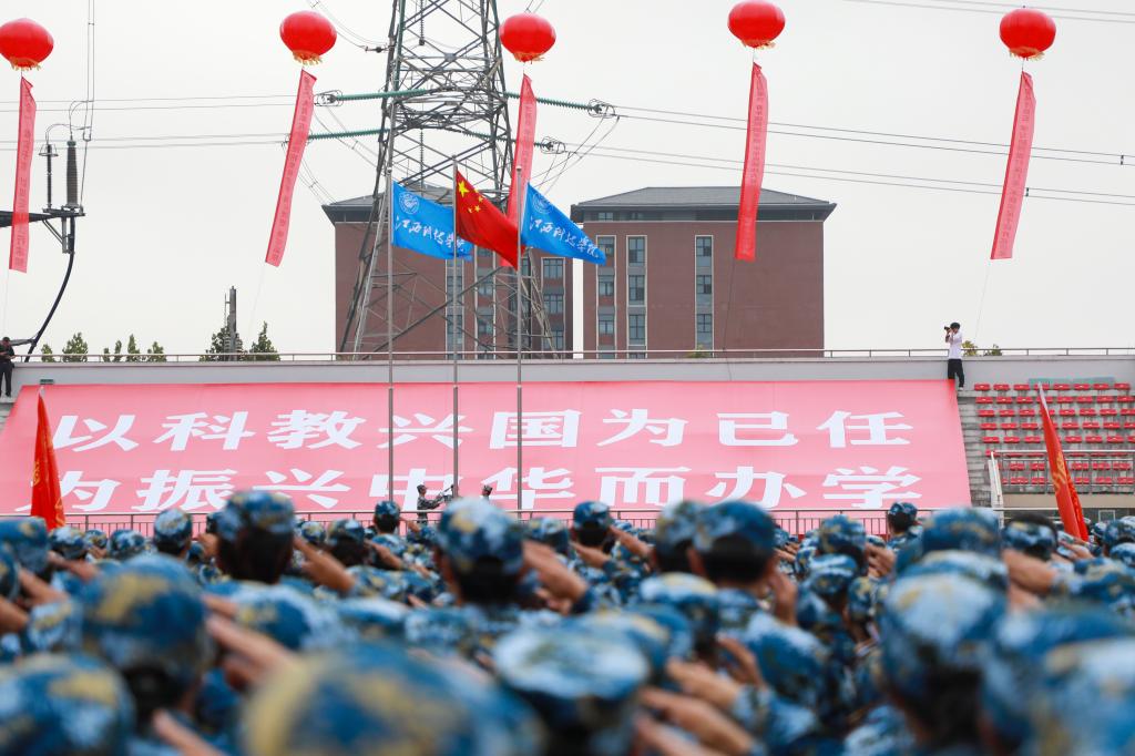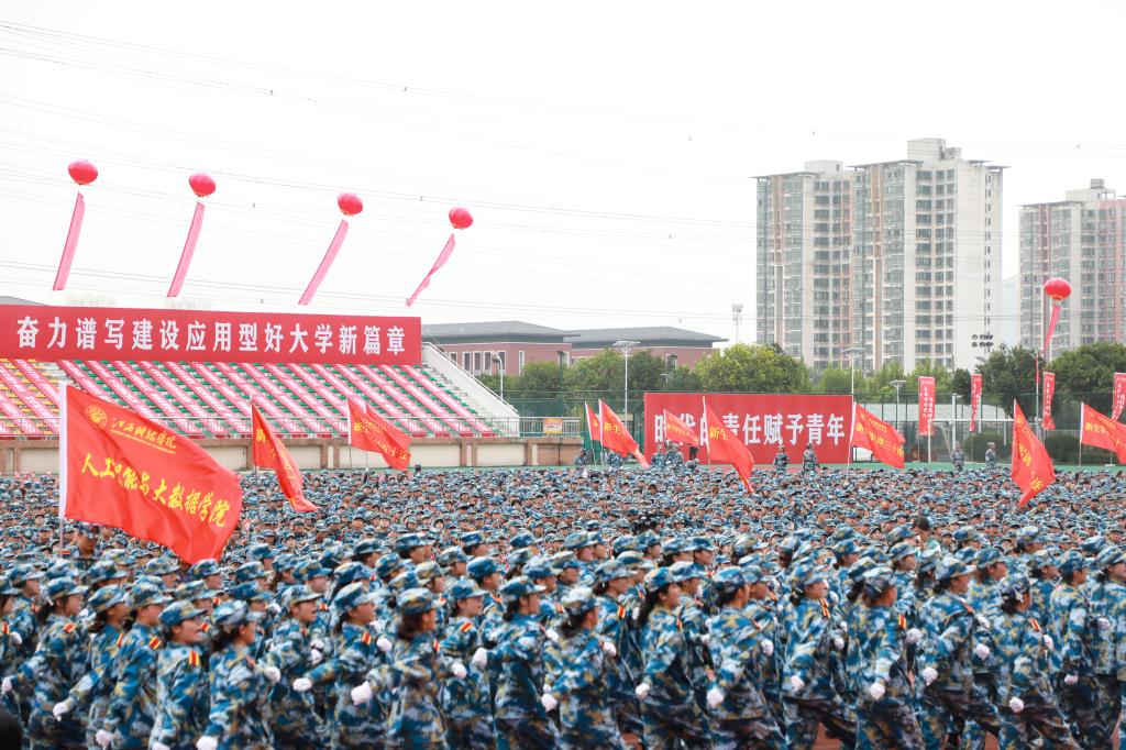 江科网讯(记者 何强江)金秋九月的奥林匹克中心,迷彩方阵如松挺立,激昂口号划破长空。9月26日上午,江西科技学院2025级新生军训检阅暨开学典礼在此举行,全体新生与校领导、教师代表、全体教官齐聚一堂,共同见证大学旅程的正式开启,在庄严与热烈的氛围中,为青春写下崭新序章。