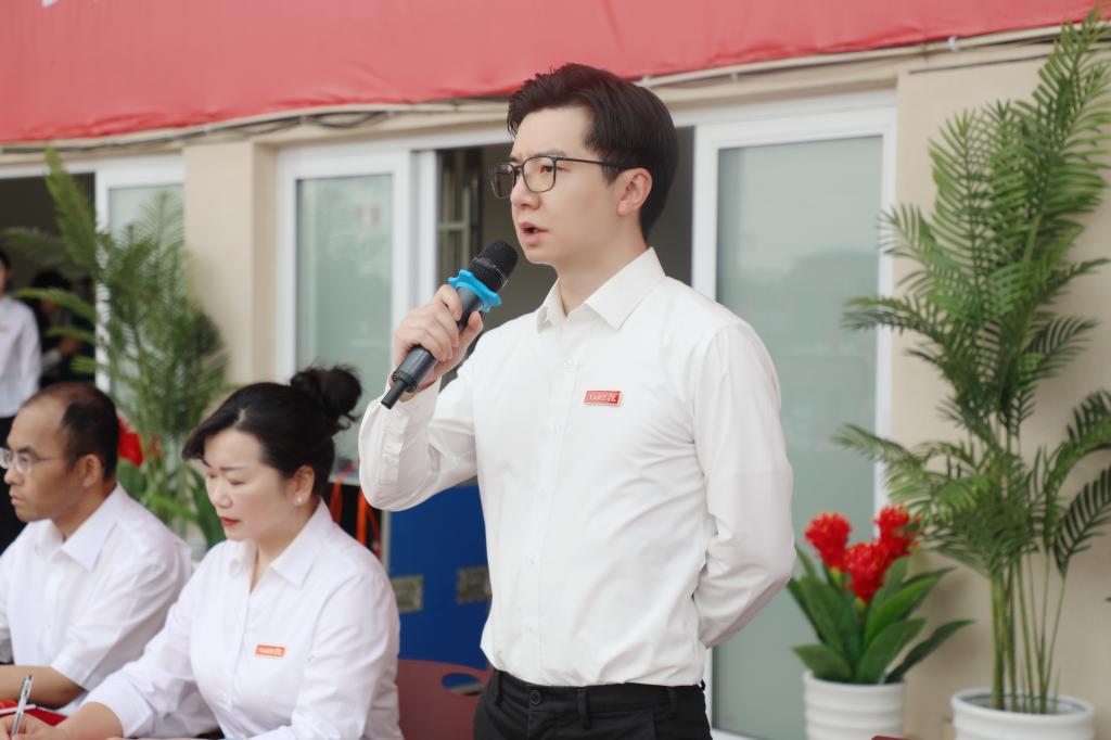 理事长喻恺听取分列式准备情况汇报并下达分列式开始指令,校长张海涛以《心有所向行则必达》为题向全体新生讲授开学第一课,学校创办人于果等全体在家校领导出席典礼。典礼由副校长周冰冰主持。