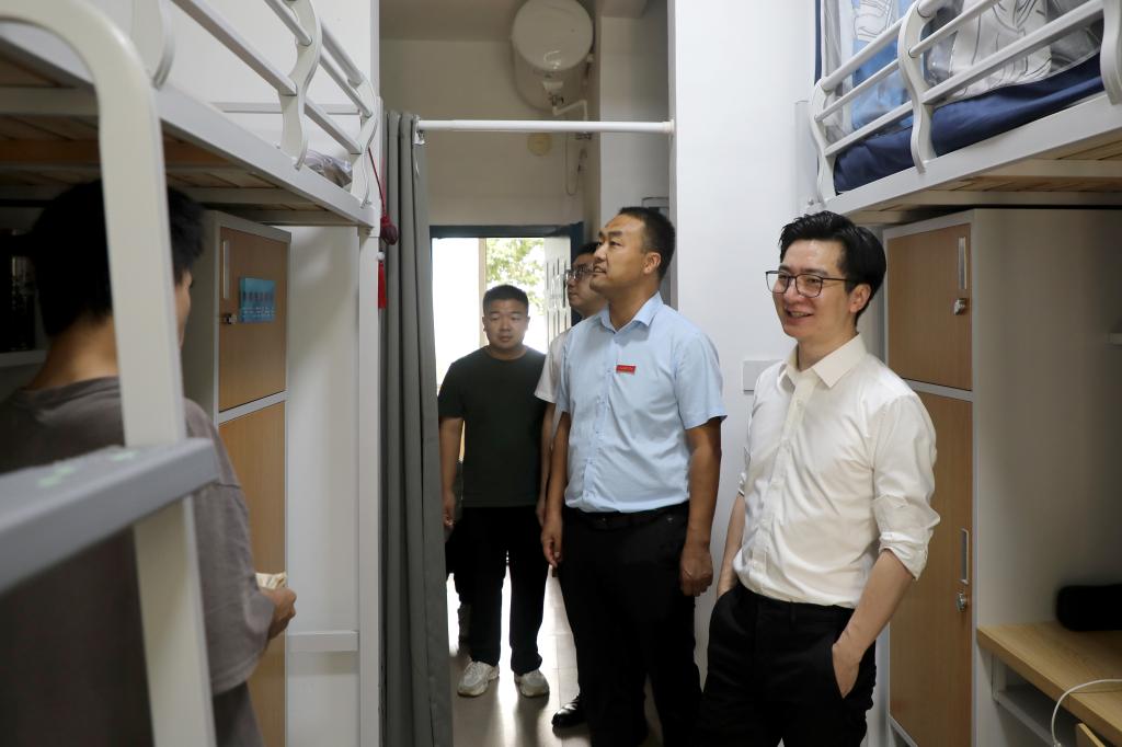 餐叙过程中,喻恺理事长认真倾听黄镇宇的成长点滴。他还亲切询问黄镇宇的生活近况、学习规划以及近期遇到的困难等,并耐心给出建议,同时肯定黄镇宇室友们的朋辈帮扶行为,鼓励大家继续相互支持、共同进步,传递校园正能量。午餐结束后,喻恺理事长与黄镇宇及其室友一同走进宿舍,细致查看住宿环境,叮嘱大家要注意早晚温差,在校园里安心学习、快乐生活。