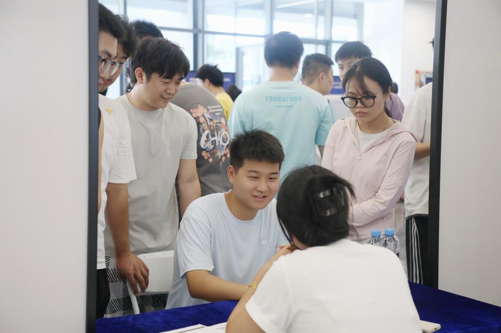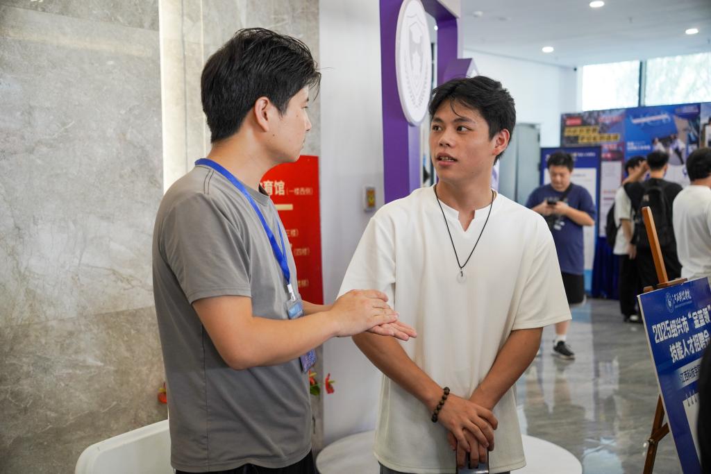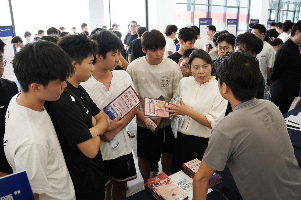 招聘会现场,长电集成电路(绍兴)有限公司、芯联集成电路制造股份有限公司、浙江盛洋科技股份有限公司、浙江精工集成科技股份有限公司等多家来自浙江绍兴的集成电路、高端制造、电气设备领域优质企业齐聚一堂,带来涵盖技术研发、生产制造、工程管理等多个岗位的招聘需求,为学子们提供了多元化的职业选择。这些企业凭借在行业内的领先地位和强劲发展势头,吸引了众多学子驻足咨询,现场交流氛围热烈。“这两天学校的招聘会规模大、岗位多,我特别重视,做了充分的准备。”23 专机械制造2班的陈志恒同学身穿笔挺的西装,穿梭在各企业的摊位前。他坦言,经过两天积极的面谈,已经和好几家心仪企业初步达成意向,“非常感谢学校提供这么好的平台。”