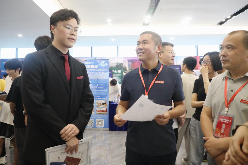 校党委书记江延湖,校党委副书记、副校长闵桂林到场视察,详细了解企业招聘需求、学子求职情况,对招聘会的组织筹备和企业参与热情给予充分肯定,强调要以此类招聘会为契机,深化校地、校企合作,为学子就业和企业发展架好“连心桥”。视察期间,江延湖书记与前来求职的同学们亲切交谈,鼓励大家“多尝试,勇于就业,在就业中找到人生的方向”。同时,江延湖书记要求各学院积极与对口企业精准对接,全力以赴为2026届毕业生高质量就业保驾护航。