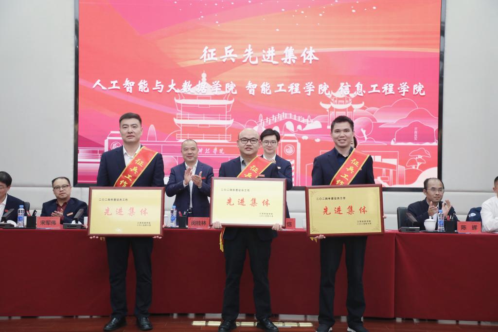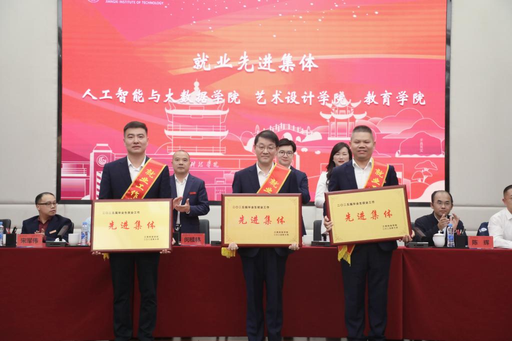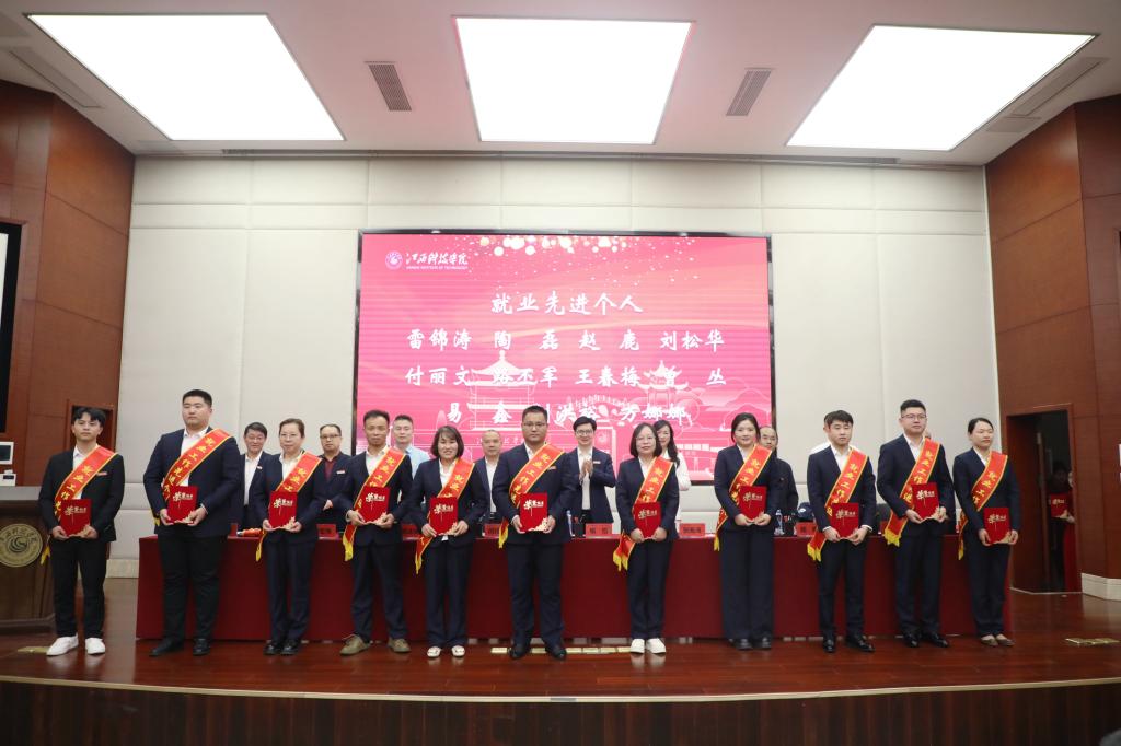 周冰冰副校长宣读2025届毕业生就业、征兵先进表彰决定。校领导为就业先进集体、征兵先进集体、就业先进个人颁奖。