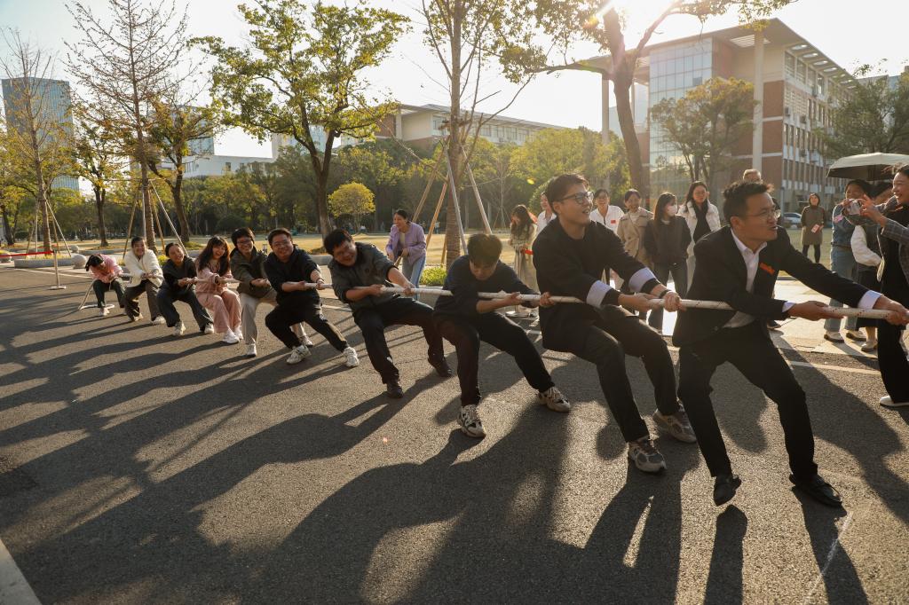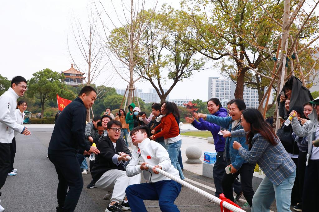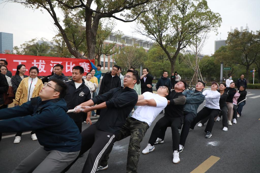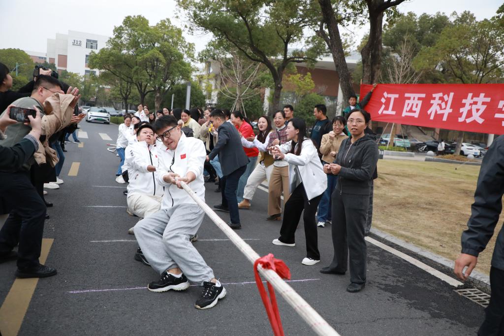 江科网讯(记者 刘莹)10月21日至29日,我校成功举办第二十六届运动会教职工拔河比赛。校长张海涛、副校长陈庆勤为比赛鸣哨开赛,并一同为拼搏的运动员们加油鼓劲。全校各分工会组建代表队踊跃参赛,在金秋校园里奏响了团结与奋进的乐章。