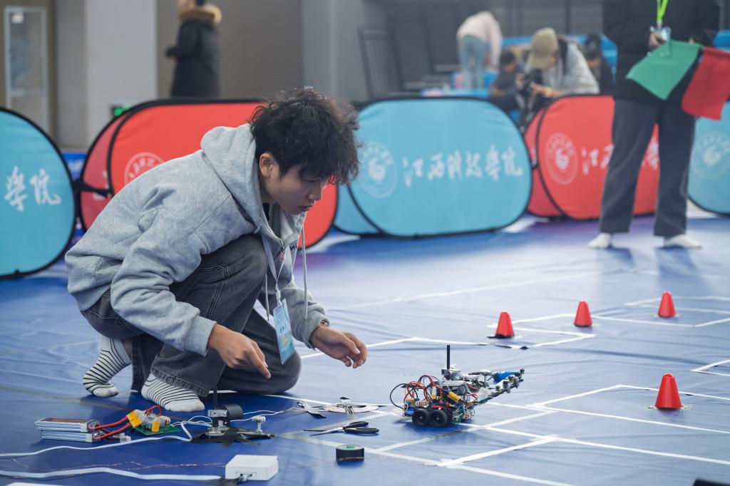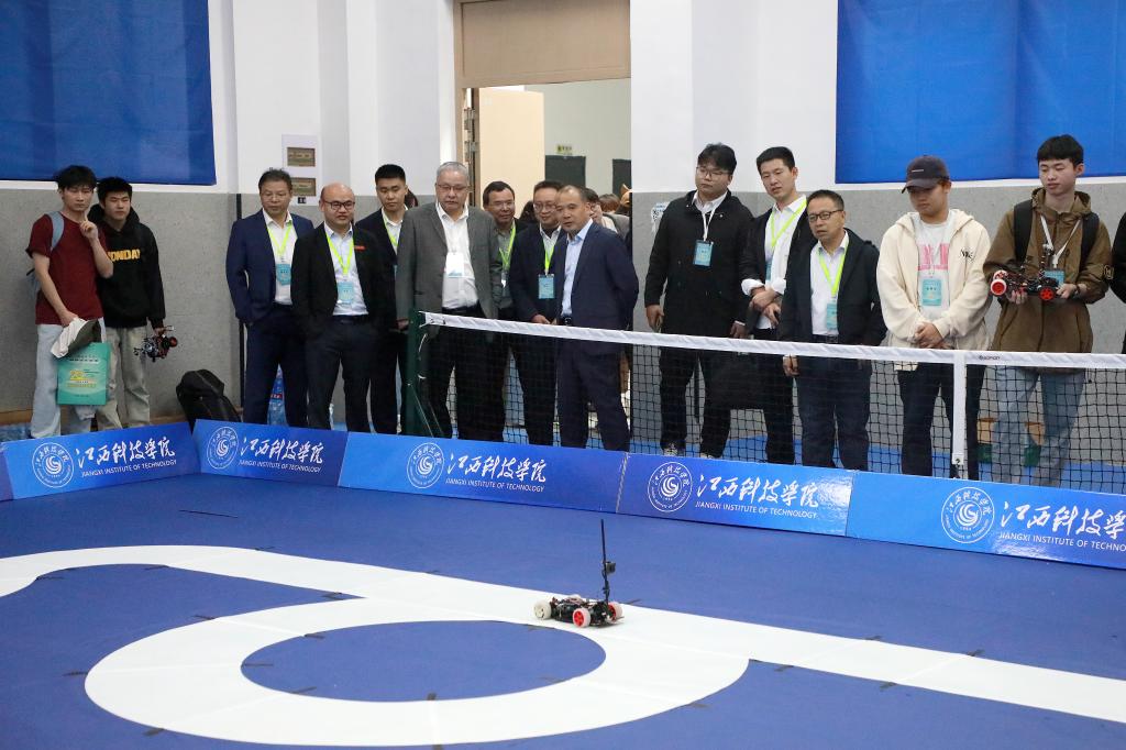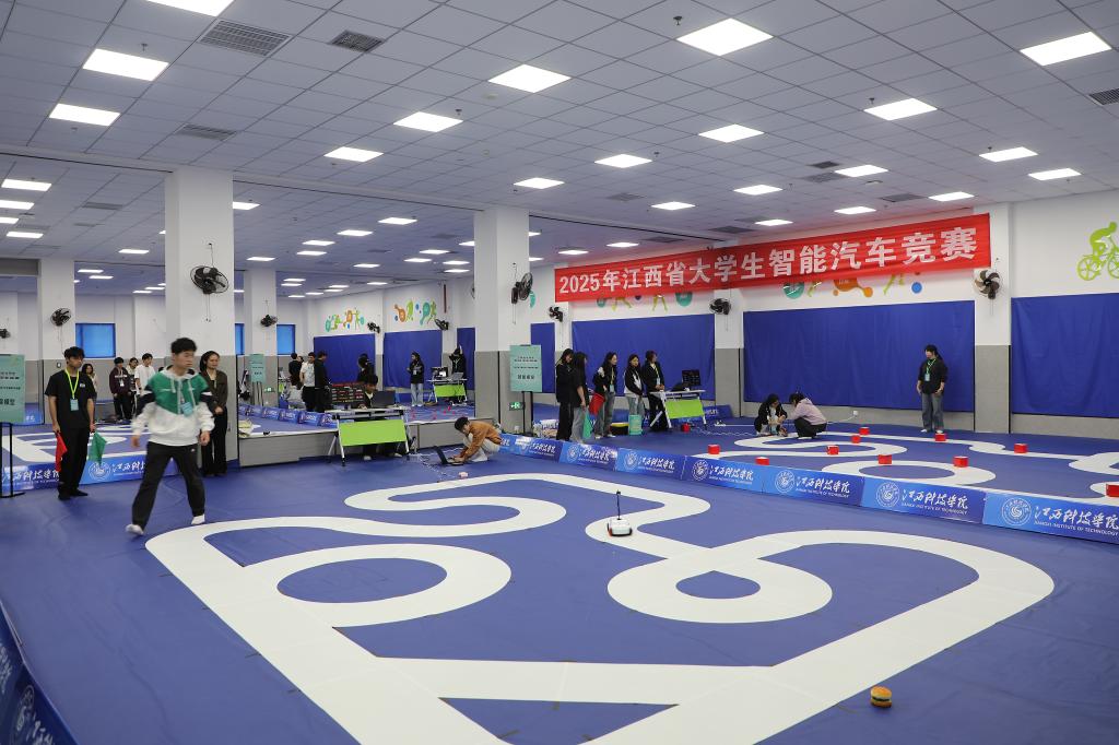 开幕式后,各赛项比拼正式开始,现场气氛热烈,充满青春的活力与科技的魅力。大赛共分为10个赛道,室内组包括极速光电、平衡轮腿、双车跟随、独轮信标、智能视觉、完全模型等六个赛道,室外组包括极速越野、气垫越野等两个赛道,本届赛事新增加缩微电磁、缩微光电两个独立赛道。江西科技学院共计38支队伍参与角逐与兄弟院校同台竞技。期间,参赛队伍指导老师还举行研讨会,围绕智能汽车竞赛的教学实践、技术创新以及人才培养等议题展开深入交流与探讨,为后续的竞赛指导工作提供新思路、新方法,积极推动江西省大学生智能汽车竞赛水平的整体提升。