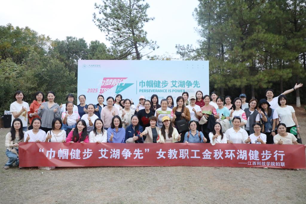 江科网讯(记者 刘莹)11月7日下午,学校妇联在艾溪湖森林湿地公园举办女教职工“金秋环湖健步走”活动。校党委书记江延湖、副校长陈庆勤出席活动。妇联副主席谢菲、妇联委员及全校各分工会女教职工代表齐聚湖畔,共赴一场与秋光相伴、与健康同行的美好之约。