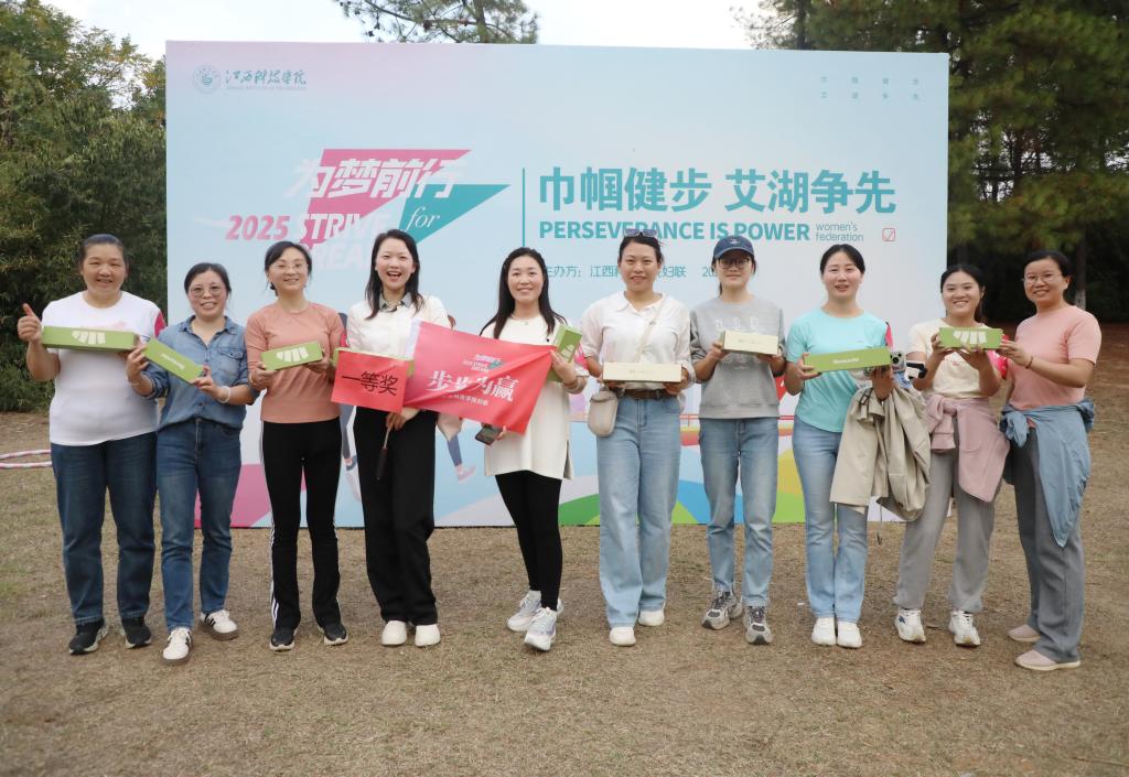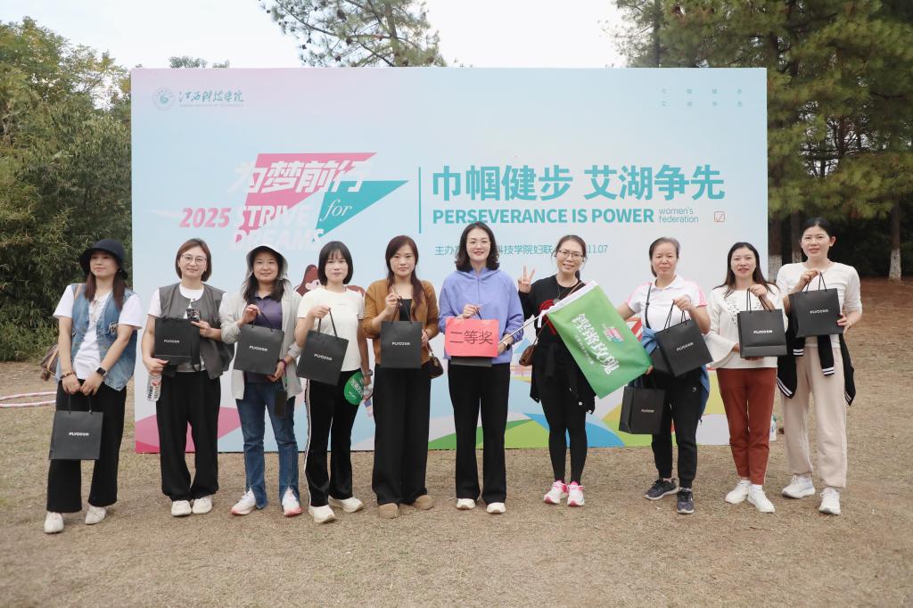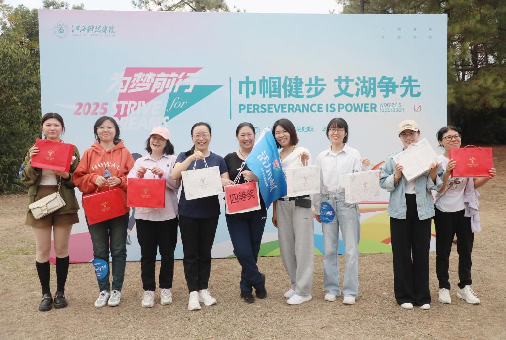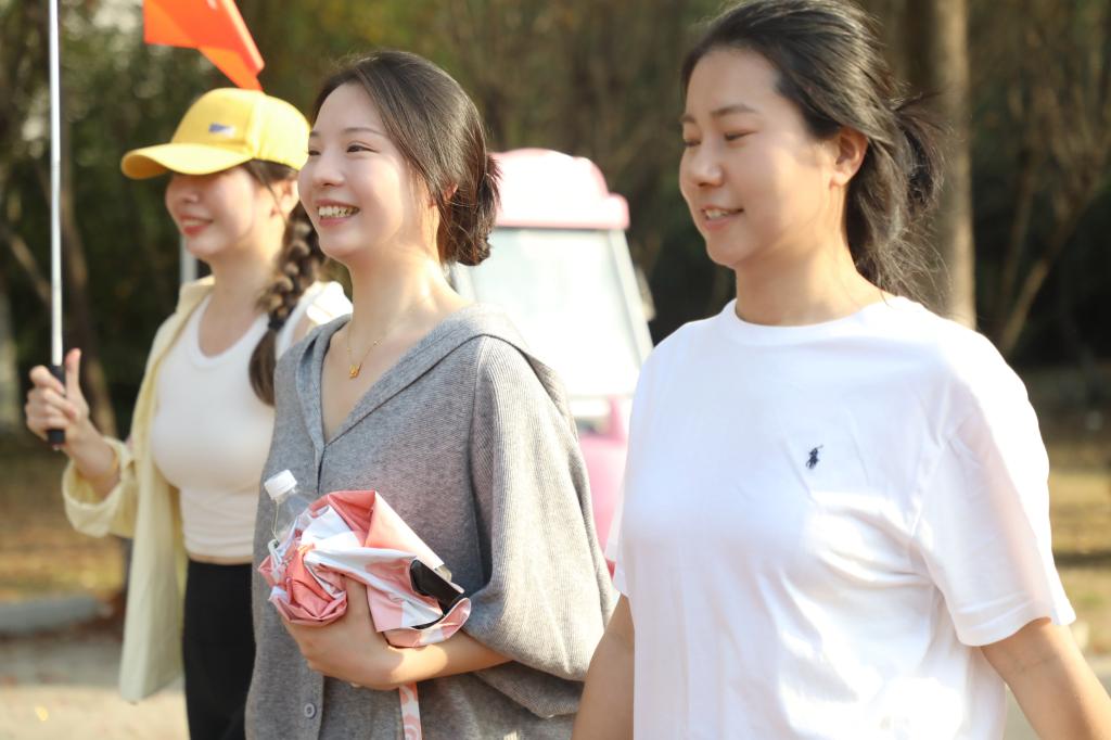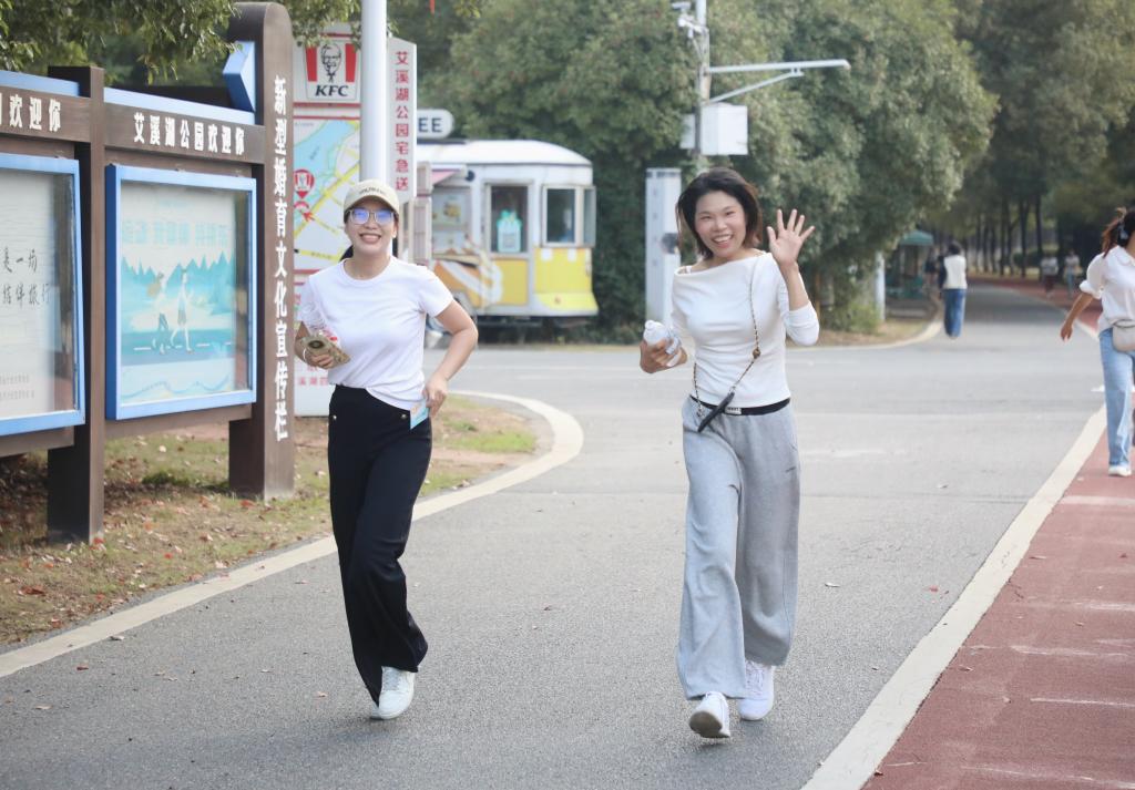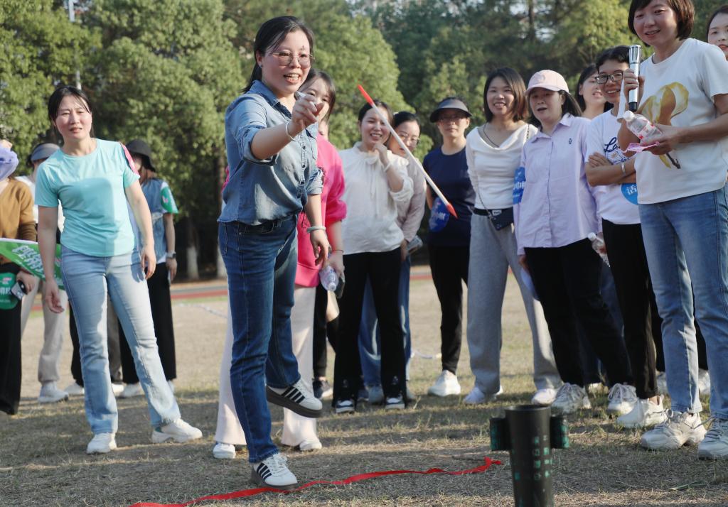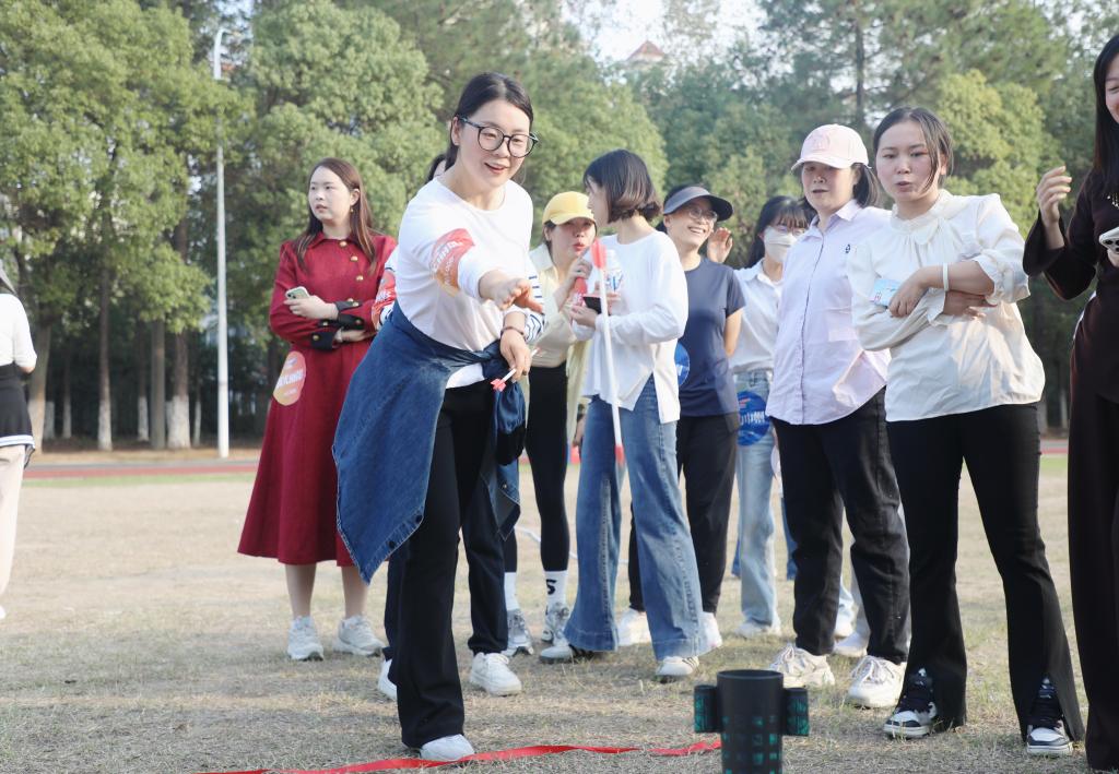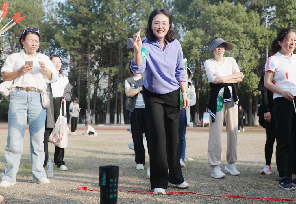 热身操过后,女教职工们组成“湖光丽影”“步步为赢”“活力巾帼”“铿锵玫瑰”四支队伍,迎着和煦秋风向湖畔深处进发。一路上,欢声笑语与林间鸟鸣交织,矫健身影与碧水丹枫相映,大家时而并肩畅谈,时而驻足赏景,在徒步中感受自然之美。抵达终点,投壶、跳大绳、“一圈到底”等趣味小游戏轮番上演,大家协作互动、其乐融融。