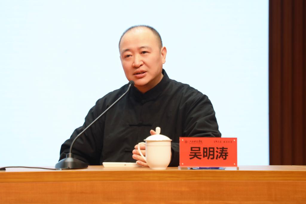 作为中国古琴重要流派,吴门琴派源远流长。自1919年怡园琴会、1935年今虞琴社成立以来,逐步形成中正平和、清微淡远的独特琴风。其中,吴兆基先生融汇太极拳与古琴操缦,开创的“简劲清和”琴风影响深远。讲座中,吴明涛结合这一传承脉络,从吴兰荪等宗师的艺术成就、“玉玲珑” 等名琴轶事切入,系统解读吴门琴学的文化内涵与艺术特质。作为吴门琴派传承者,他还分享了古琴技艺传承中的实践与思考,助力师生理解古琴艺术中蕴含的中华美学精神与人文情怀。