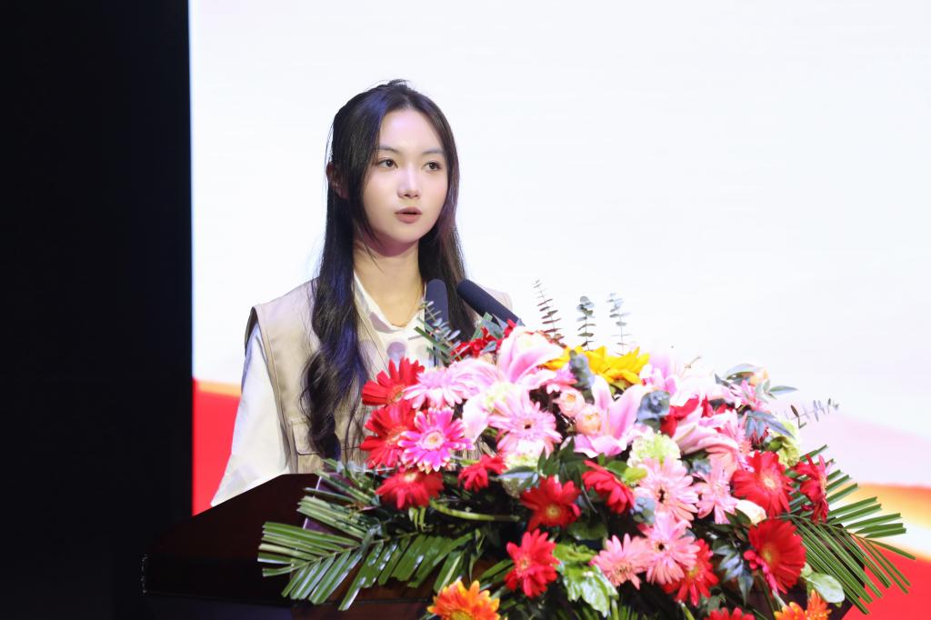 学生作者代表、23级影视摄影与制作专业的汤怡静发言,对学校与熊盛文教授的悉心指导表示感谢,同时表态将再接再厉,在摄影专业领域持续深耕、创作出更多优质作品。