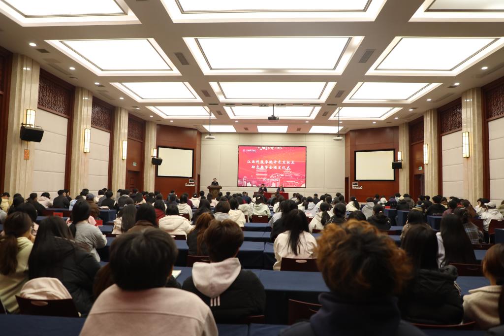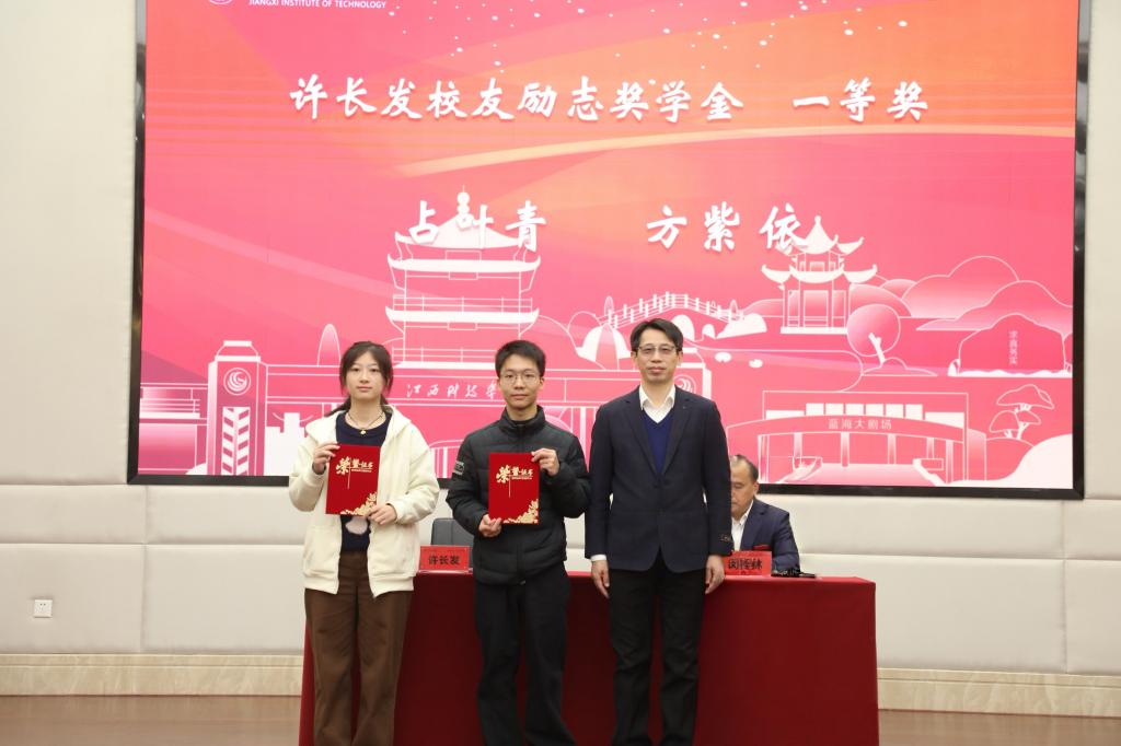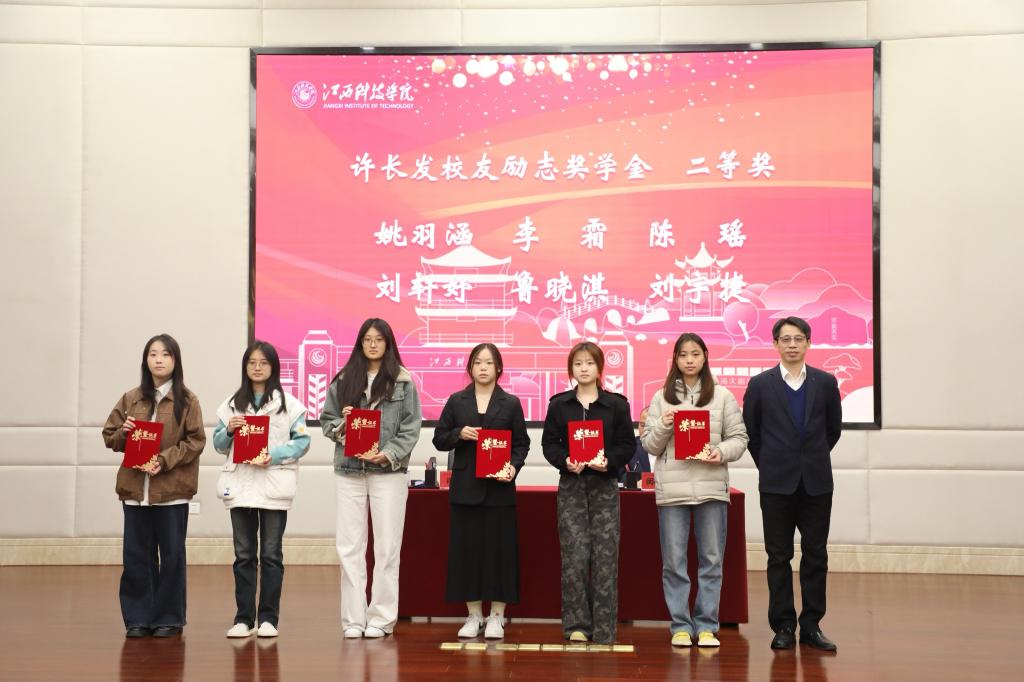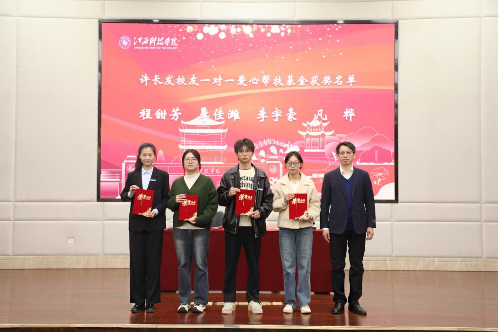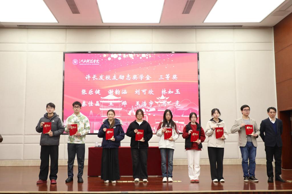 闵桂林副校长在讲话中回顾了近年来学校资助育人体系的优化转型,指出学校已逐步构建起全链条资助培养体系,全面助力学子成长成才。他嘱咐同学们要深耕专业领域,做刻苦求进的江科人,不断锤炼过硬本领;要树立“先就业、再择业”的务实就业观,在实践中积累经验、超越自我;要常怀感恩之心,感念家人、学校、社会的温情托举,更铭记校友反哺母校的赤诚情怀;要厚植“大江科”情怀,主动担当学校与社会间的桥梁纽带,传递江科声音。最后,他勉励同学们以此次获奖为新起点,奋勇争先、担当实干,用青春实绩为学校增光添彩。