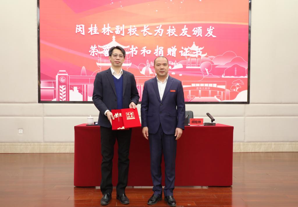 仪式上,闵桂林副校长为许长发校友颁发荣誉证书和捐赠证书。学工处处长鲁斌宣读励志奖学金、校友一对一帮扶基金获奖名单。闵桂林副校长、许长发校友为获奖学生颁发荣誉证书。