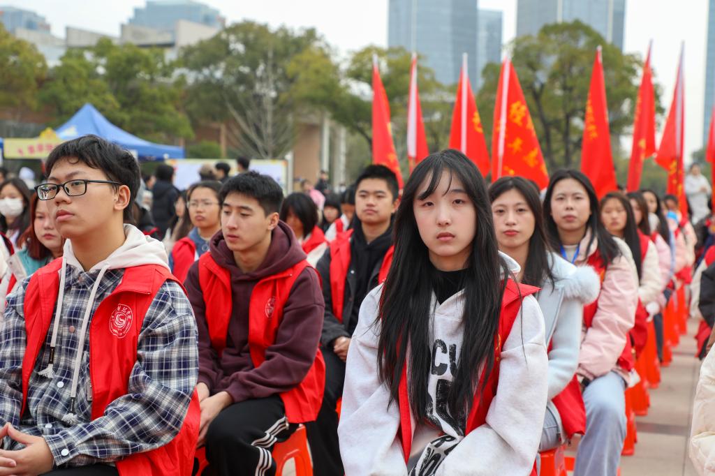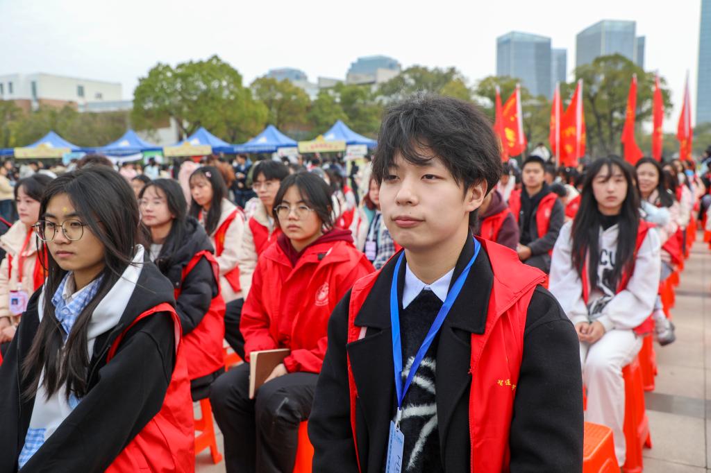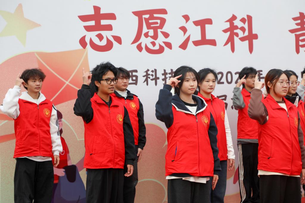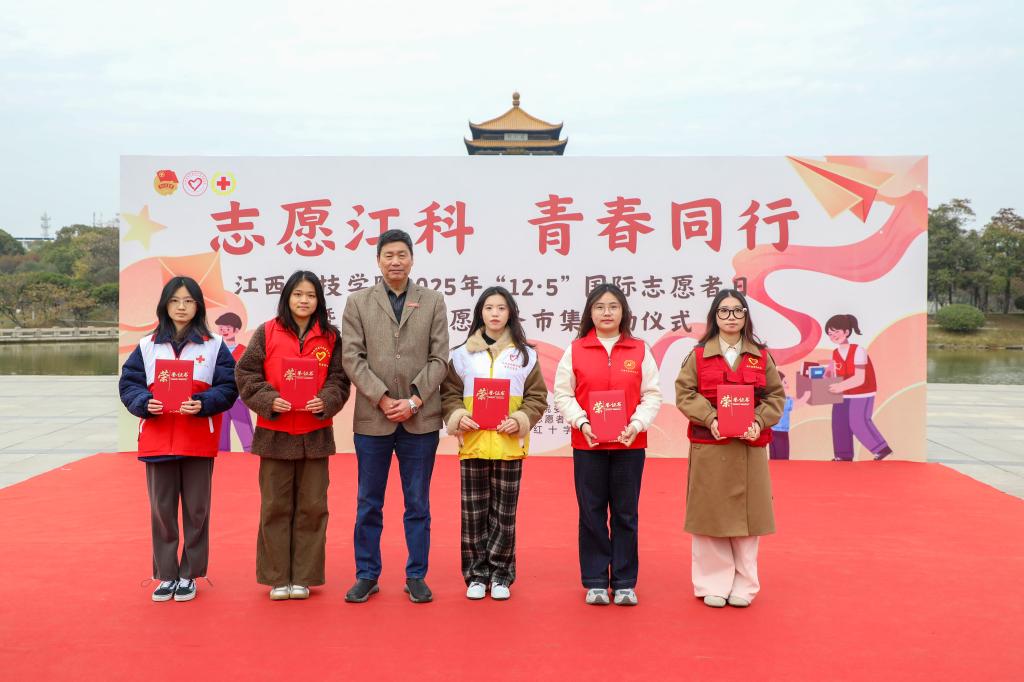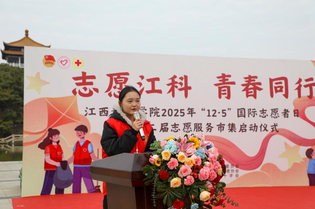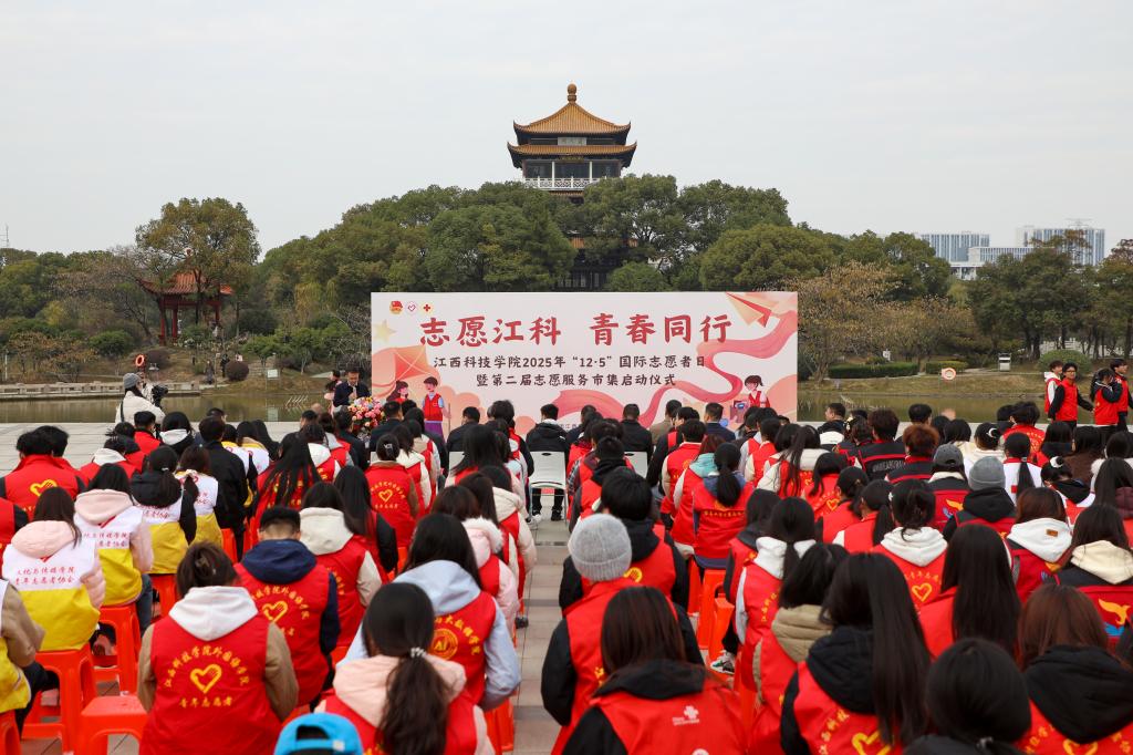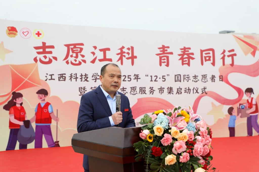 闵桂林在讲话中对持续做好我校志愿服务工作,提出四点期望。一是锚定崇高价值坐标,将青春志愿融入强国复兴洪流。要自觉将志愿服务与“乡村振兴”“共同富裕”“绿色发展”等国家战略对接,与江西地方发展需求结合,胸怀“国之大者”,从“小切口”做起,办“大情怀”实事,把志愿精神转化为服务国家、社会和人民的具体行动,在奉献中实现个人价值升华,展现江科青年心系家国、堪当大任的风采。二是锤炼过硬服务本领,推动志愿服务向专业化精准化品牌化发展。要深耕专业化领域,在心理健康辅导、智慧助老、普法宣传、美育支教、应急救护等领域提供精准服务;要打造品牌化项目,持续擦亮“雷锋在身边”品牌,孵化“青少年科普行动”“数字反哺计划”“生态守护行动”等特色子品牌;要创新组织化模式,积极探索“项目化招募、团队化运作、学分化认证、成果化展示”全流程管理,让志愿服务成为高质量社会实践课。三是构建协同支持体系,为志愿服务行稳致远筑牢根基。要完善制度保障,健全志愿者注册、培训、激励全链条制度,深化“第二课堂成绩单”与志愿服务融合;要建强资源平台,优化线上智慧平台,拓展线下实体阵地,建立稳定校外实践基地;要营造向善文化,选树宣传先进典型,为优秀项目提供支持。四是积极响应生命召唤,传承发扬无偿献血的爱心义举。各志愿服务组织和广大青年志愿者要继续发扬大爱精神,科学认识献血、积极宣传献血、有序参与献血,让“我献血、我健康、我快乐”的理念深入人心,持续为生命护航。