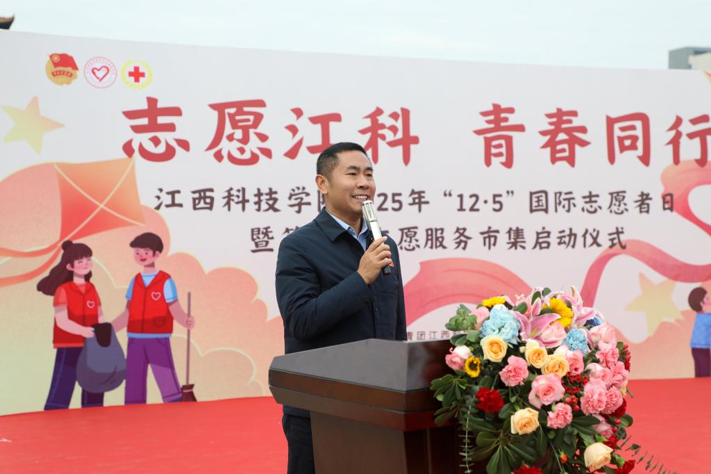 江科网讯(记者 何强江)在第40个国际志愿者日到来之际,临水广场暖意融融、活力涌动,2025年江西科技学院“12・5”国际志愿者日暨第二届志愿服务市集在此举办。校党委书记江延湖出席仪式并宣布活动正式启动,校党委副书记、副校长闵桂林讲话,校党委副书记、纪委书记夏拥华为国际志愿者日优秀服务项目颁奖。组织部、宣传部、统战部、学工部(处)、校团委等职能部门负责同志,各学院党委(总支)书记、团委书记、青年志愿者协会负责人、志愿者代表及学生代表齐聚一堂,共同见证志愿精神的传承与绽放,传递出高校师生的温度与向善的力量。