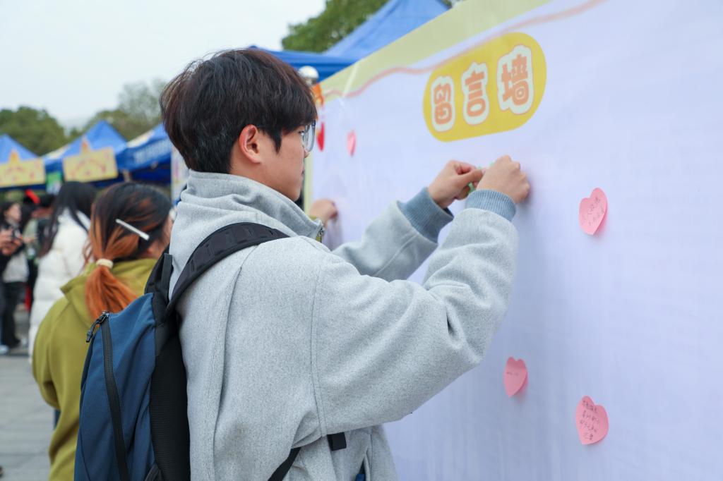 启动仪式结束后,一场汇聚青春力量、传递公益温情的志愿服务市集就此拉开帷幕。作为志愿服务项目化、专业化、常态化发展的重要载体,市集整合校内外优质公益资源,涵盖应急救护、健康义诊、科技服务、文化传承、环保实践等多个领域,通过技能传授、互动体验、创意展示等丰富形式,让志愿精神可感可及。南昌大学、江西水利电力大学、南昌交通学院等高校的青年志愿者协会应邀带来趣味互动项目,促进校际志愿文化交流互鉴。市集设置的集章兑换机制,让参与过程更具趣味性,吸引大批师生驻足打卡。“以前觉得志愿服务离自己很远,今天在市集里亲手体验了急救技能,还学到了环保知识,才发现公益就在身边。”参与活动的陈嘉豪同学说,这样的形式让他真切感受到志愿精神的魅力,今后也想加入志愿者队伍。来自阳光天使服务团的姚嘉颖同学表示:“看到大家积极参与我们策划的项目,分享收获与感动,让我觉得所有的付出都很有意义。志愿服务不是单向的奉献,更是双向的成长。”