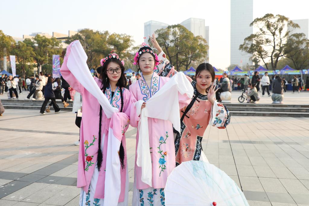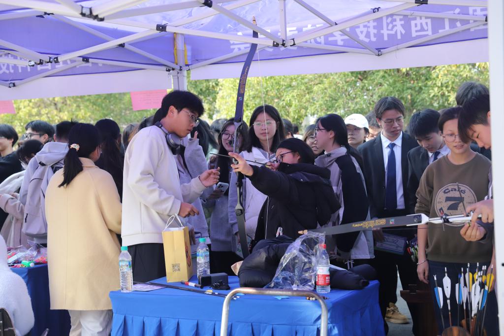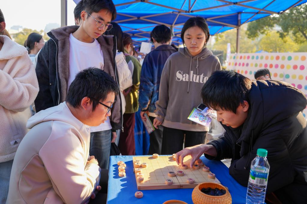 社团游园会则以多元互动为核心,打造了一场全方位、沉浸式的文化嘉年华。中心展示区的微型舞台上,街舞社的动感节奏、话剧社的深情演绎、动漫社的宅舞表演与汉服社的典雅走秀轮番上演,用青春活力点燃现场氛围,展现了学生社团蓬勃向上的文化生命力;美食售卖区里,冰皮月饼、糖葫芦、闽南四果汤等特色美食香气四溢,免费姜茶驱寒暖身,让师生在味蕾狂欢中感受生活暖意;传统文化区通过飞花令、诗词接龙、非遗漆艺DIY、国风摄影等形式,让千年文脉在互动体验中焕发新生;文体活动区的投壶、套圈、射箭、数独挑战等项目兼具趣味性与参与感,既有怀旧经典玩法,也有潮流休闲体验,成为师生释放压力、收获快乐的绝佳去处;公益互助区的养生问答、急救科普、禁毒宣传与心理闯关游戏有机结合,在传递实用知识的同时,助力师生身心健康成长。