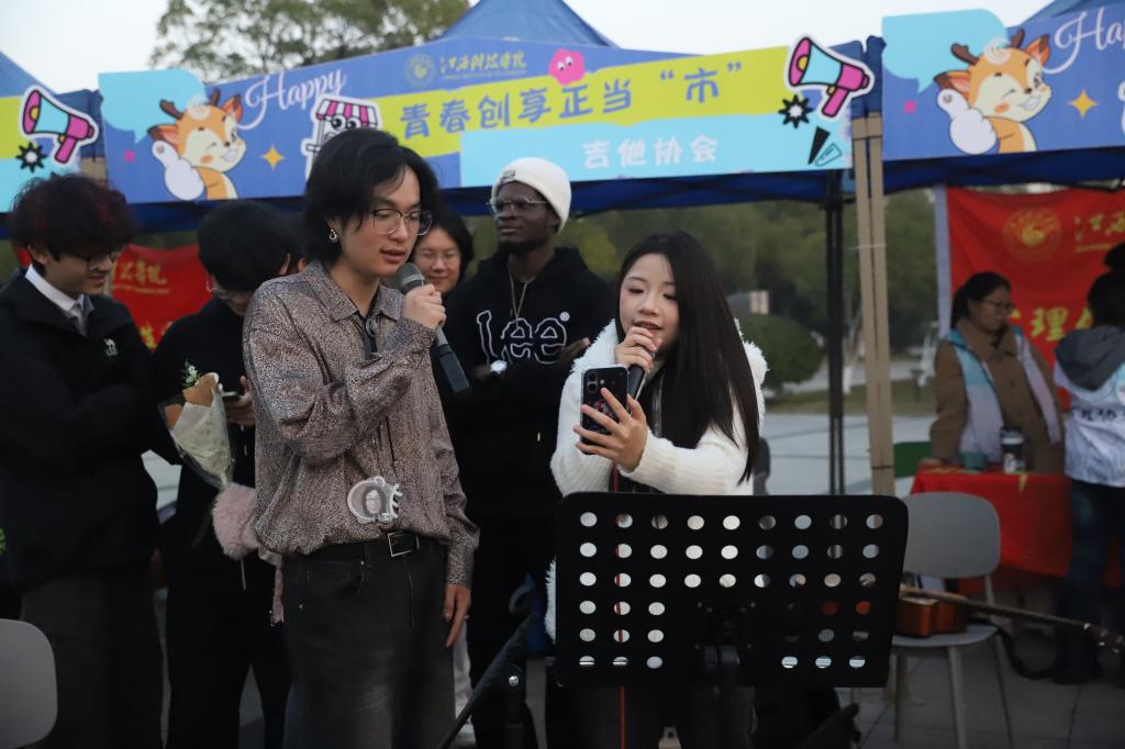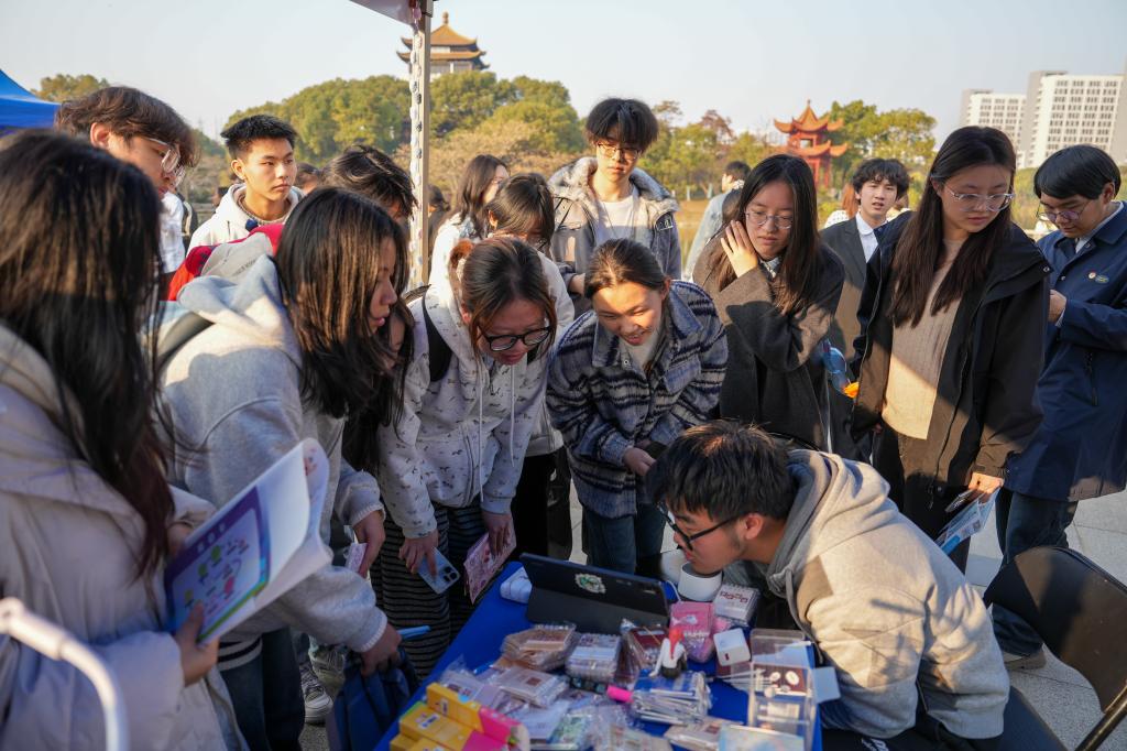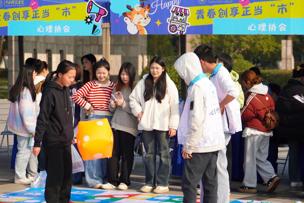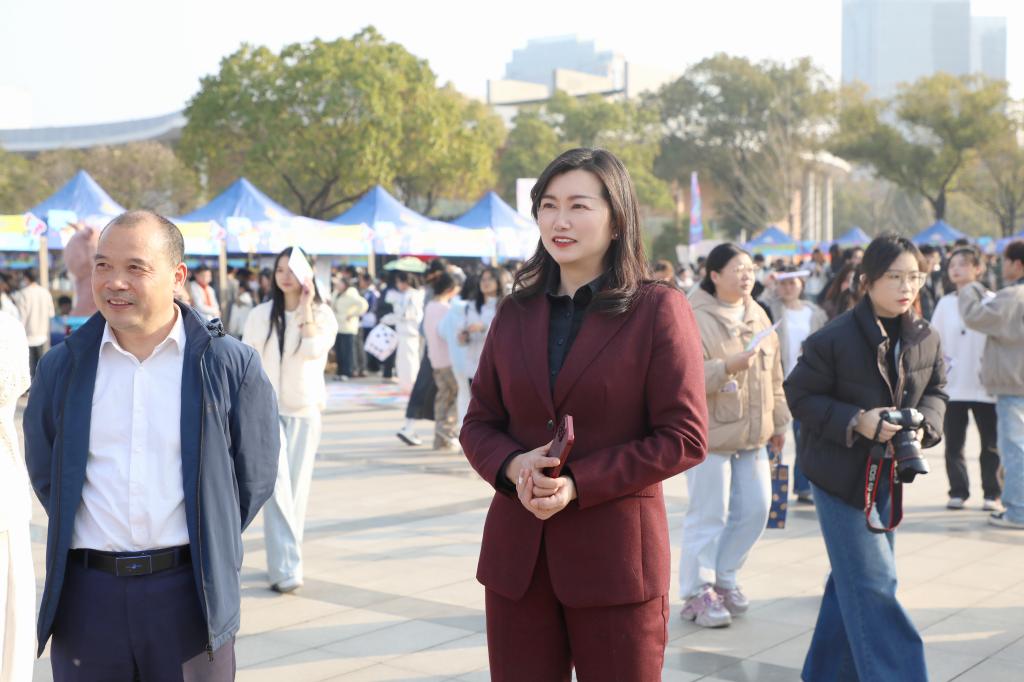 江科网讯(记者 何强江 刘莹 实习记者 杨斌 李能智)12月19日下午,临水广场人声鼎沸、暖意融融,“青春创享正当‘市’”第九届大学生创意市集与“青春集结号·社团梦起航”第四届学生社团游园会同步启幕。校长张海涛,副校长闵桂林、陈辉,校党委副书记夏拥华,副校长王涛涛亲临现场指导,与全体师生共同见证这场集创新创业实践、社团文化展示、公益爱心传递于一体的校园盛会。