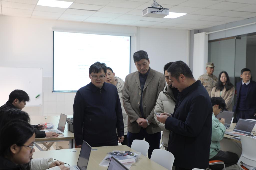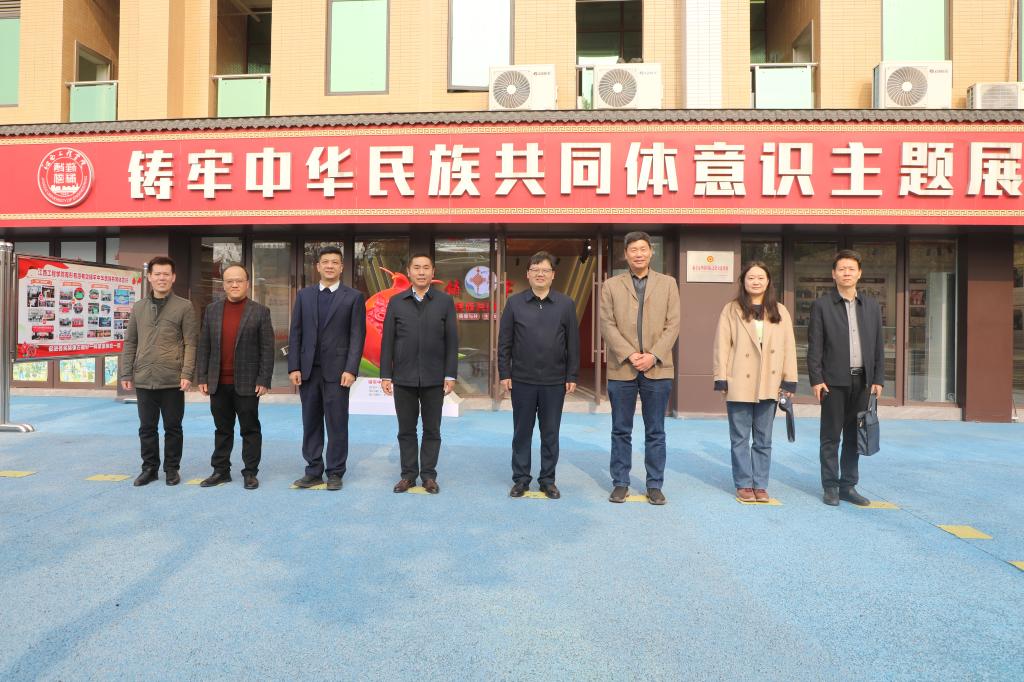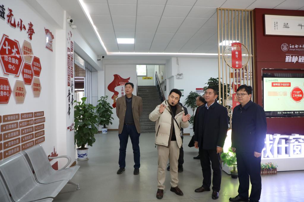 座谈交流前,在魏建克等人的陪同下,江延湖一行先后前往江西工程学院“一站式”学生社区服务中心、党建+国防教育活动室、红芯科技先锋工作室,以及铸牢中华民族共同体意识主题展示馆实地考察。