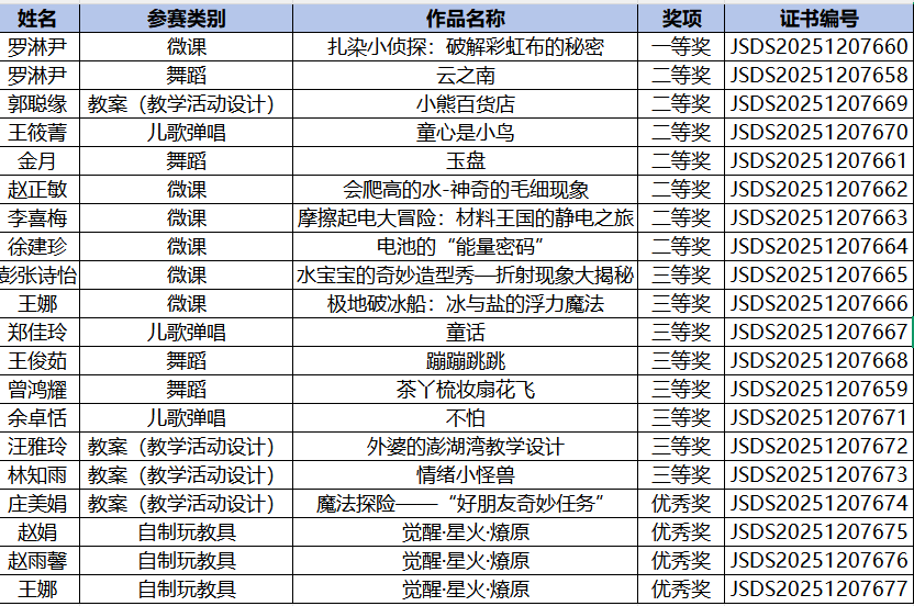 据悉,该赛事由中国人民大学书报资料中心《幼儿教育导读》杂志社、当代学前教育网等单位联合举办,是推动《“十四五”学前教育发展提升行动计划》实施的全国性重要赛事,覆盖369所高等院校及幼儿园,参赛规模大、作品水平高、竞争激烈。为备战此次赛事,学校高度重视,统筹部署学前教育专业教学团队开展备赛工作,从选题规划、作品设计、制作打磨到提交审核,全程为学子提供精准辅导,经过多轮筛选优化,最终确定参赛作品,充分彰显了学校以赛促学、以赛促教的育人导向。