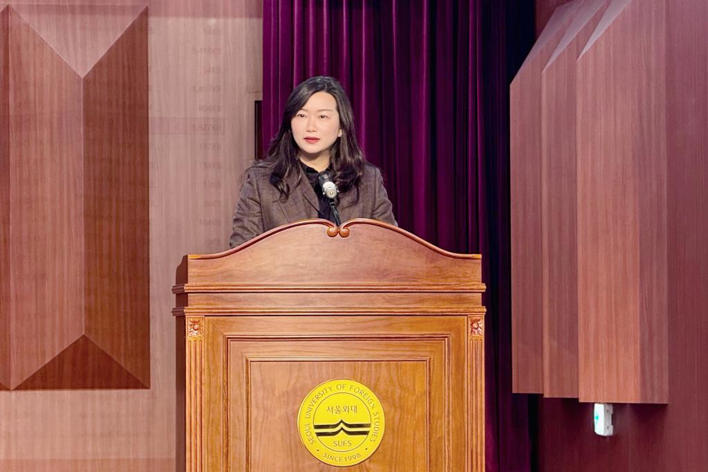 张海涛校长在致辞中向攻读博士学位的老师们表达祝贺与期许。她表示,两校致力于以学术资源互联为抓手,携手开拓国际化办学新路径,构建高水平人才培养联合体。她寄语在首尔外大攻读博士项目的老师们三点希望:一是希望大家勇担使命,成为学校学科建设的“开拓者”。研修的AI数据科学、国际教育学、国际地区学等专业,是当下及未来科技与人文社科发展的前沿领域。希望大家不仅追求个人学术精进,更要将所学、所思、所研主动融入学校的学科发展、专业建设和课程改革之中,将国际前沿的理论、方法与我校的应用型办学特色相结合,真正把知识转化为推动学校高质量发展的生产力。二是希望大家潜心向学,成为严谨治学的“践行者”。希望大家珍惜学习机会,尽快完成从教师到学者的角色转换,处理好工作、学习与生活的关系。要秉承首尔外大“百闻不如一见,百见不如一干”的实践导向,沉下心来,深入钻研,恪守学术规范,追求学术创新,以高质量的学术成果完成学业,为后来的同仁树立标杆。三是希望大家学以致用,成为立德树人的“示范者”。希望大家将攻读博士学位过程中锤炼出的研究能力,批判性思维和国际前沿知识,有效转化为课堂教学内容与教学方法,用自身追求卓越的学术态度去感染学生,培养出更多具备创新精神和国际竞争力的优秀学子。
