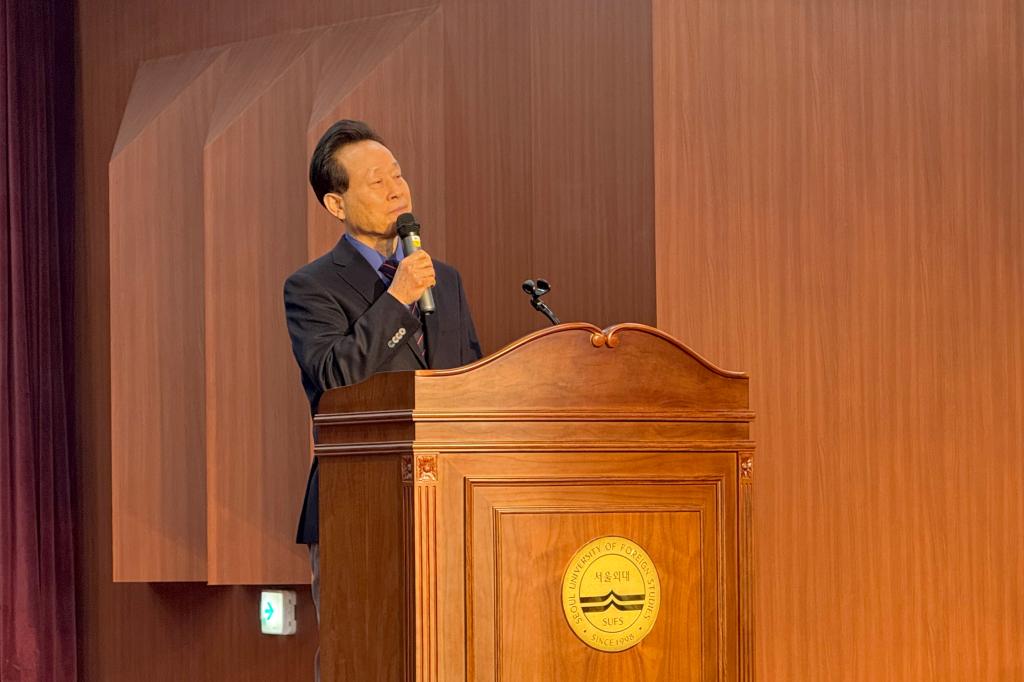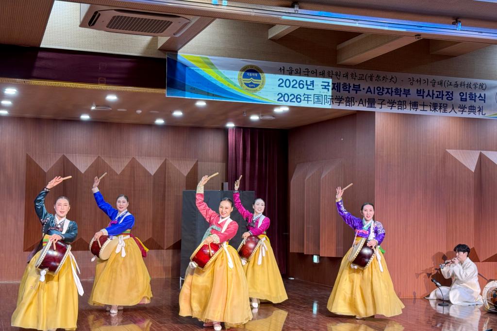 当天上午,开学典礼在首尔外大大礼堂举行。典礼由该校国际合作交流处处长芮晟豪主持,两校管理团队、职能部门代表、博士生导师及新生共同参与。