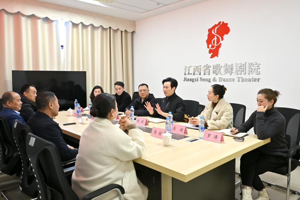 江西省歌舞剧院院长杜欢热情接待江延湖一行并陪同参观江西省歌舞剧院,介绍剧院的发展现状、演出活动及取得的成果。随后,双方召开座谈交流会,就深化校企合作、推进产业学院建设、拓展就业岗位等议题展开深入探讨。