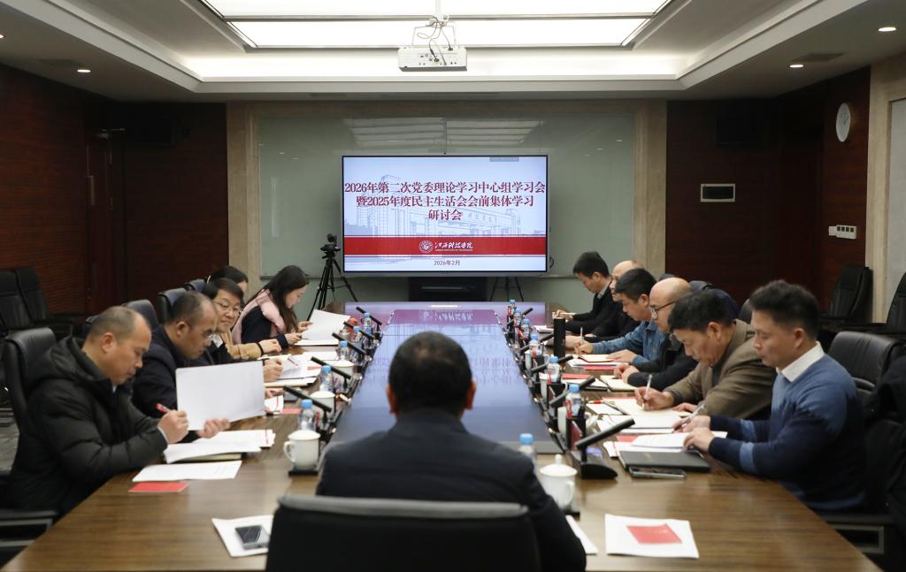 江科网讯(记者 李倩)为深入学习贯彻习近平新时代中国特色社会主义思想及党的二十大和二十届历次全会精神,巩固深化深入贯彻中央八项规定精神学习教育成果,打牢高质量开好2025年度民主生活会的思想基础,2月27日,校党委理论学习中心组召开2026年第2次学习会暨2025年度民主生活会会前集中学习研讨会。校党委书记江延湖主持集中学习并讲话,中心组全体成员参加会议。