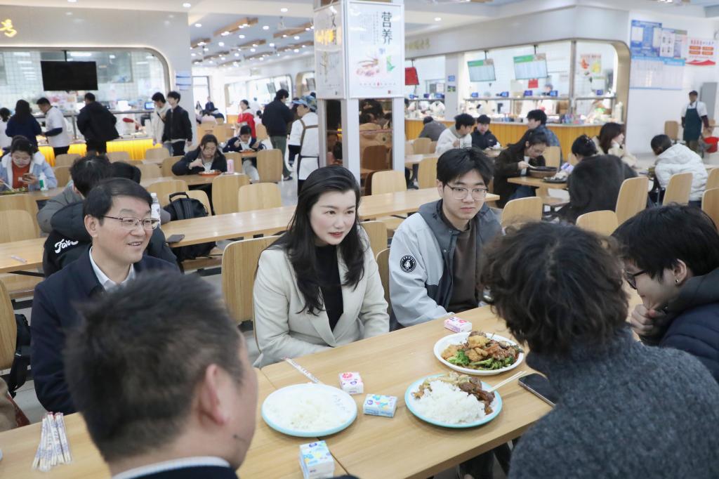 午餐时间,张海涛校长与就餐的学生们共进午餐,认真倾听每一位同学的发言并予以回应,当场叮嘱随行的食堂管理负责人认真梳理、逐条落实,切实把学生的需求放在心上、落到实处。就餐过程中,张海涛校长还与同学们亲切交流学习生活情况,鼓励大家珍惜校园时光,努力学习专业知识,积极参与体育锻炼,保持健康的生活方式。她表示,学校始终把学生的成长成才放在首位,将持续优化后勤服务保障,不断提升餐饮质量和服务水平,为同学们的学习生活保驾护航。同学们纷纷表示,与校长共进午餐,感受到了学校的温暖与关怀,今后将更加努力学习,不辜负学校的期望。