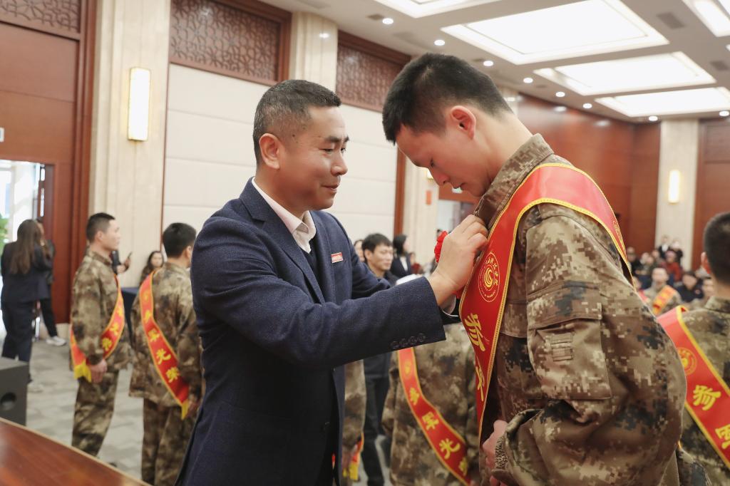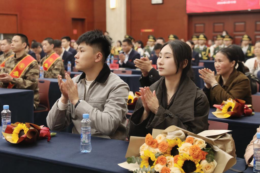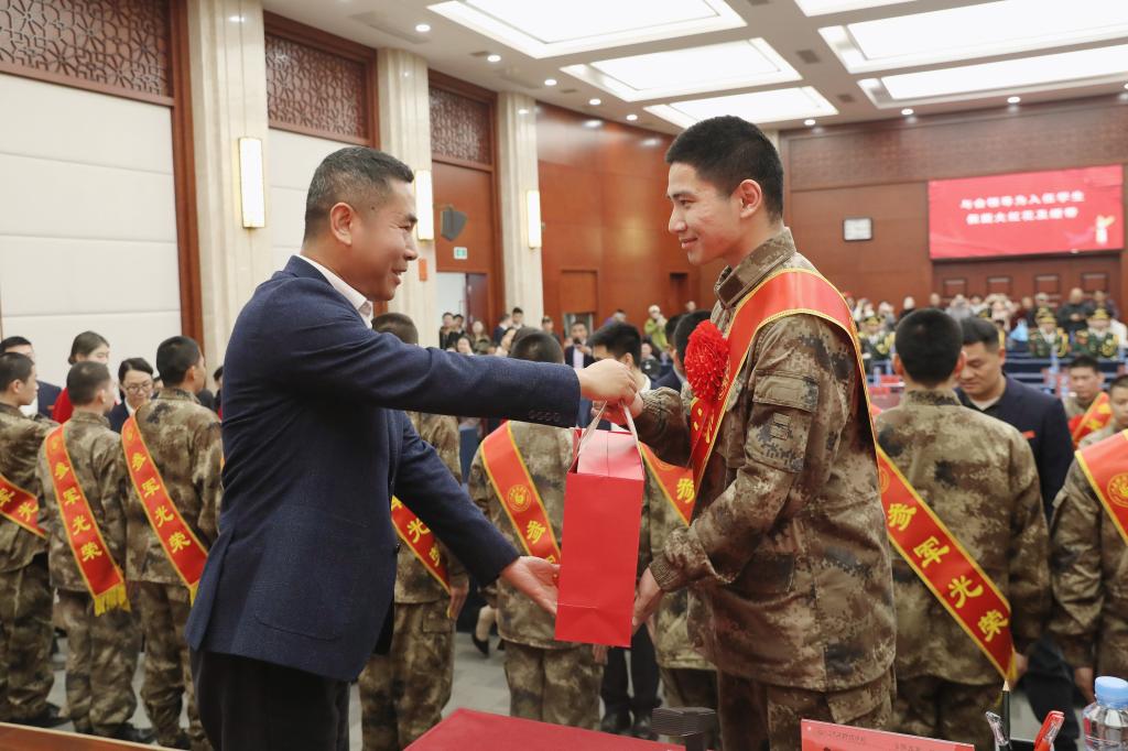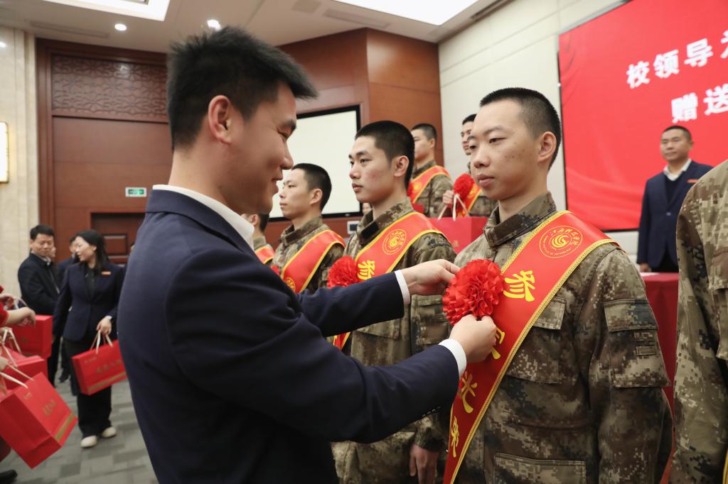 闵桂林宣读本次入伍学生名单,向即将投身军营的同学们表示热烈祝贺。与会领导为入伍学生佩戴大红花及绶带,为他们送上象征荣誉与祝福的纪念品,勉励他们在军营中锤炼意志、增长才干,为国防事业贡献青春力量。